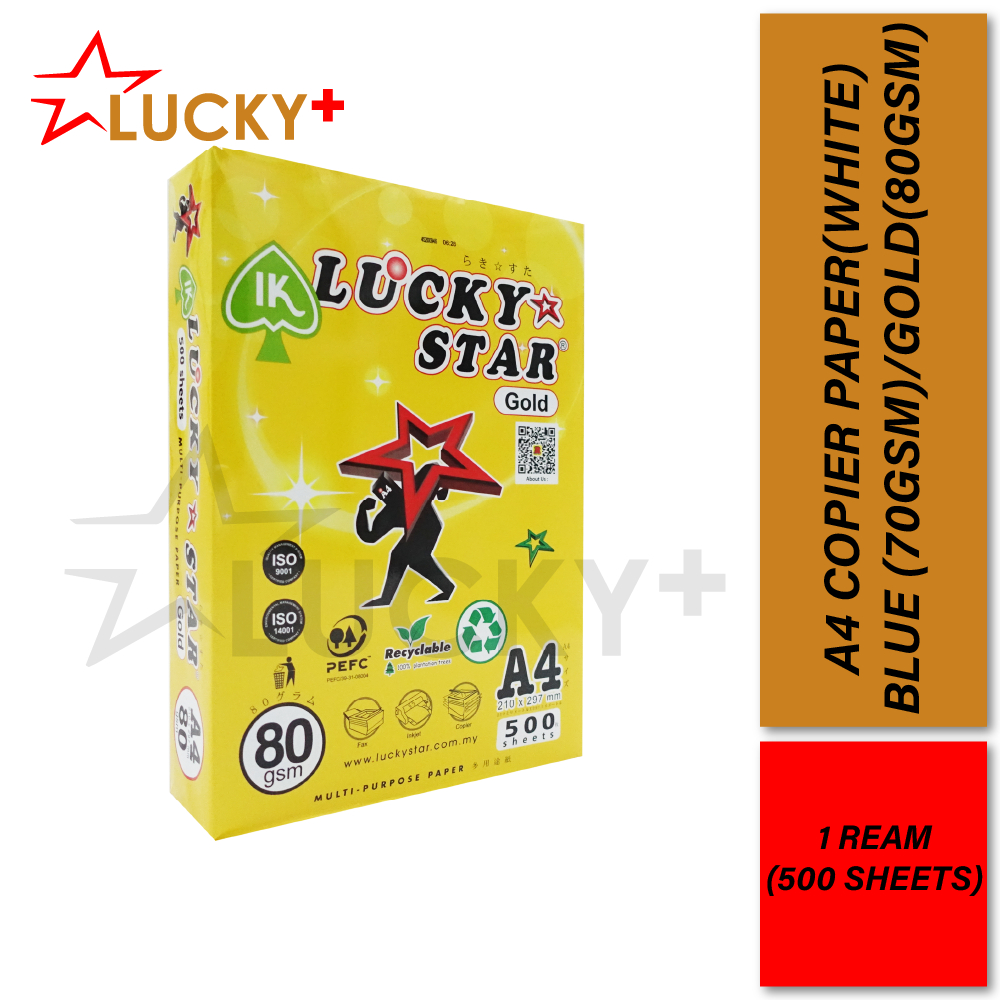 Lucky Star A4 Copier Paper 70/80gsm 500s White Paper (1 Ream) / A4 Paper / Kertas A4 / Copier Paper