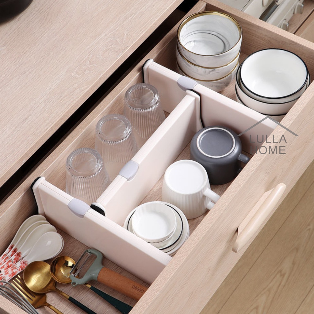 LullaHome Extendable Drawer Divider Adjustable Partition Kitchen Utensil Clothes Wardrobe Stationery Organizer Divider