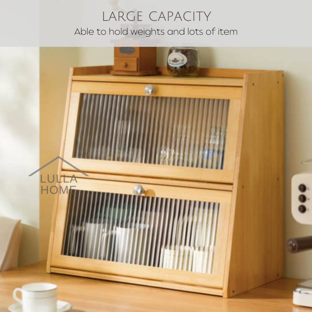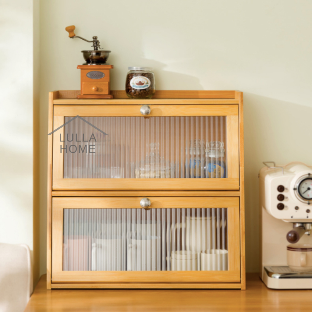 LullaHome Minimalist Muji Nordic Bamboo Cabinet Kitchen Pantry Countertop Retro Storage Cabinet