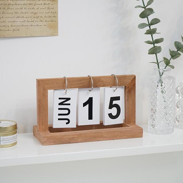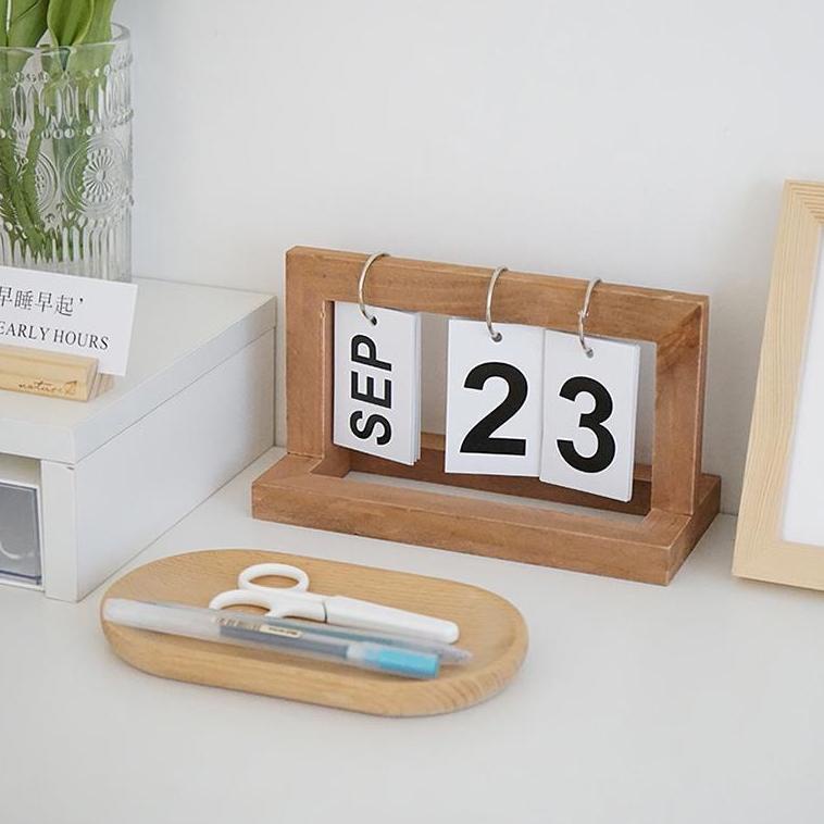 LullaHome Simple Minimalist Aesthetic Wooden Calendar Nordic Flipping Desk Stand-Up Calendar Page Display Kalendar Kayu