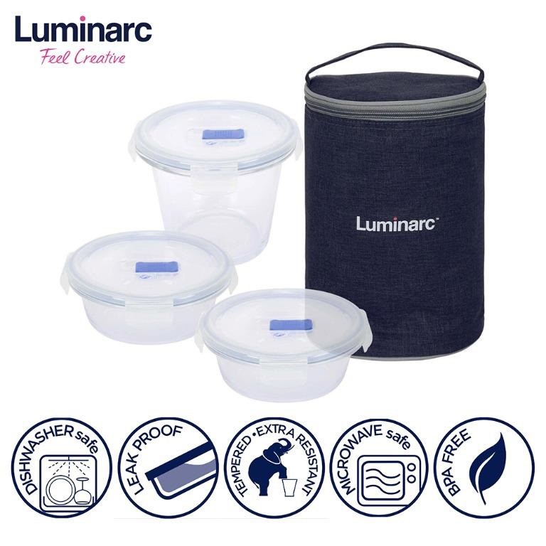 Luminarc S4P Pure Box Round Glass Lunch Box Container with Bag 420ml x2 840ml x1