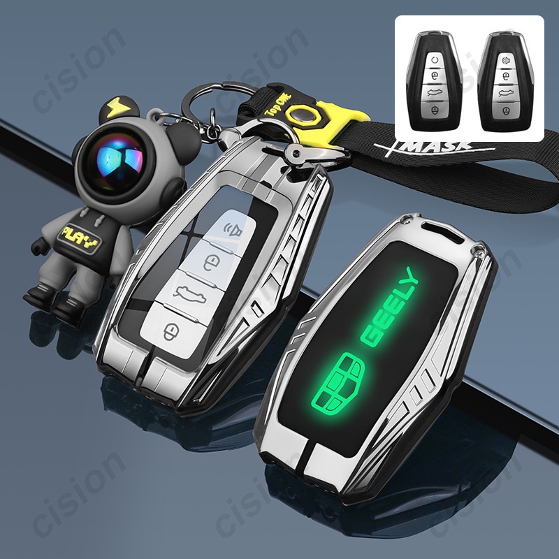 Luminous Silicone Zinc Alloy Smart Car Key Fob Case Cover Leather Keychain Remote Holder Shell For Proton X50 X90 Geely Okavango Coolray Atlas Azkarra Tugella Monjaro Emgrand GT