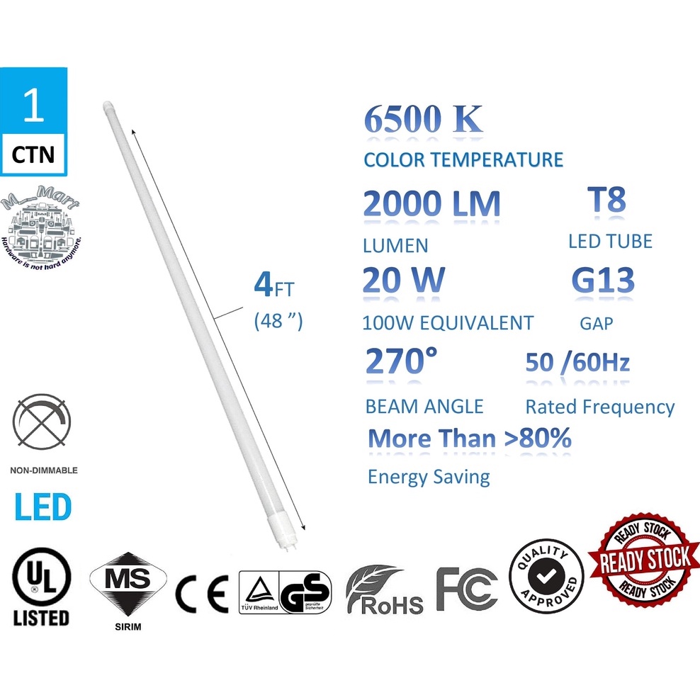 Lumitec 4FT LED Tube T8 [ SIRIM ] 30Pcs Daylight 6500K Energy Saving up tp 80%