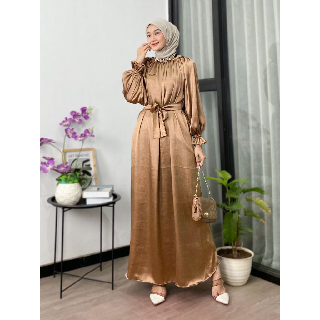 LUNA WOMEN'S GAMIS DRESS CRADENZA SHIMMER SILK LUXURY HARI RAYA Jubah Muslimah Dress Raya
