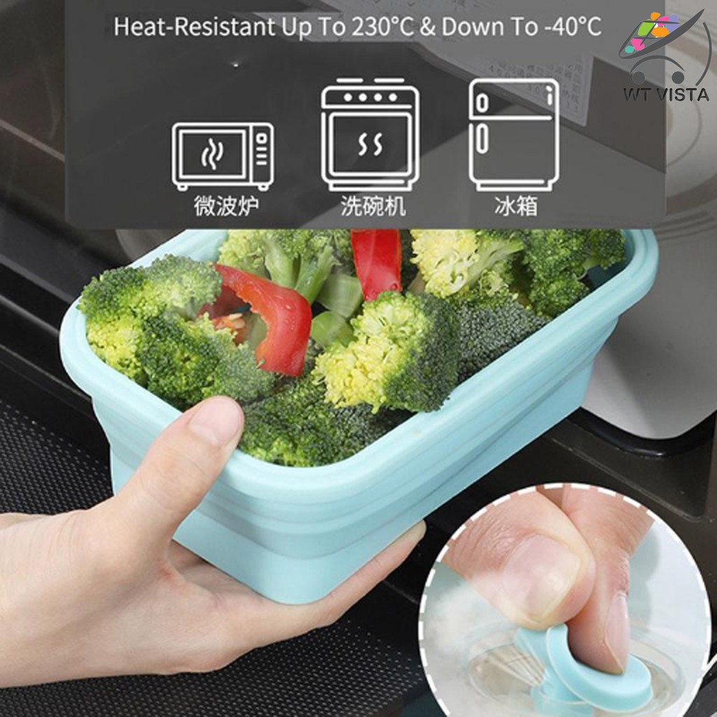 Bekas Tapau Makanan Jimat Ruang Nipis Lunch Box Collapsible Containers 3 In 1 Silicone Collapsible Food Storage Bento