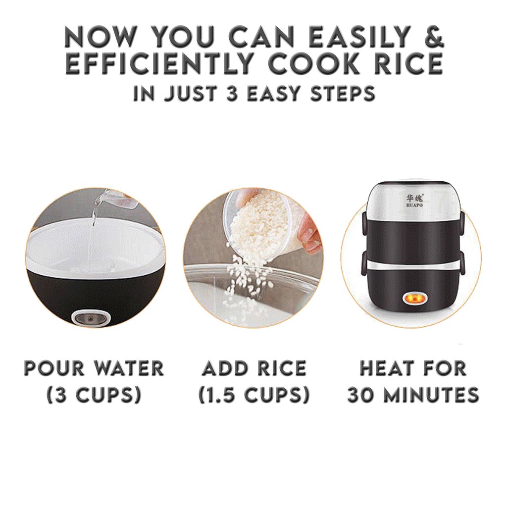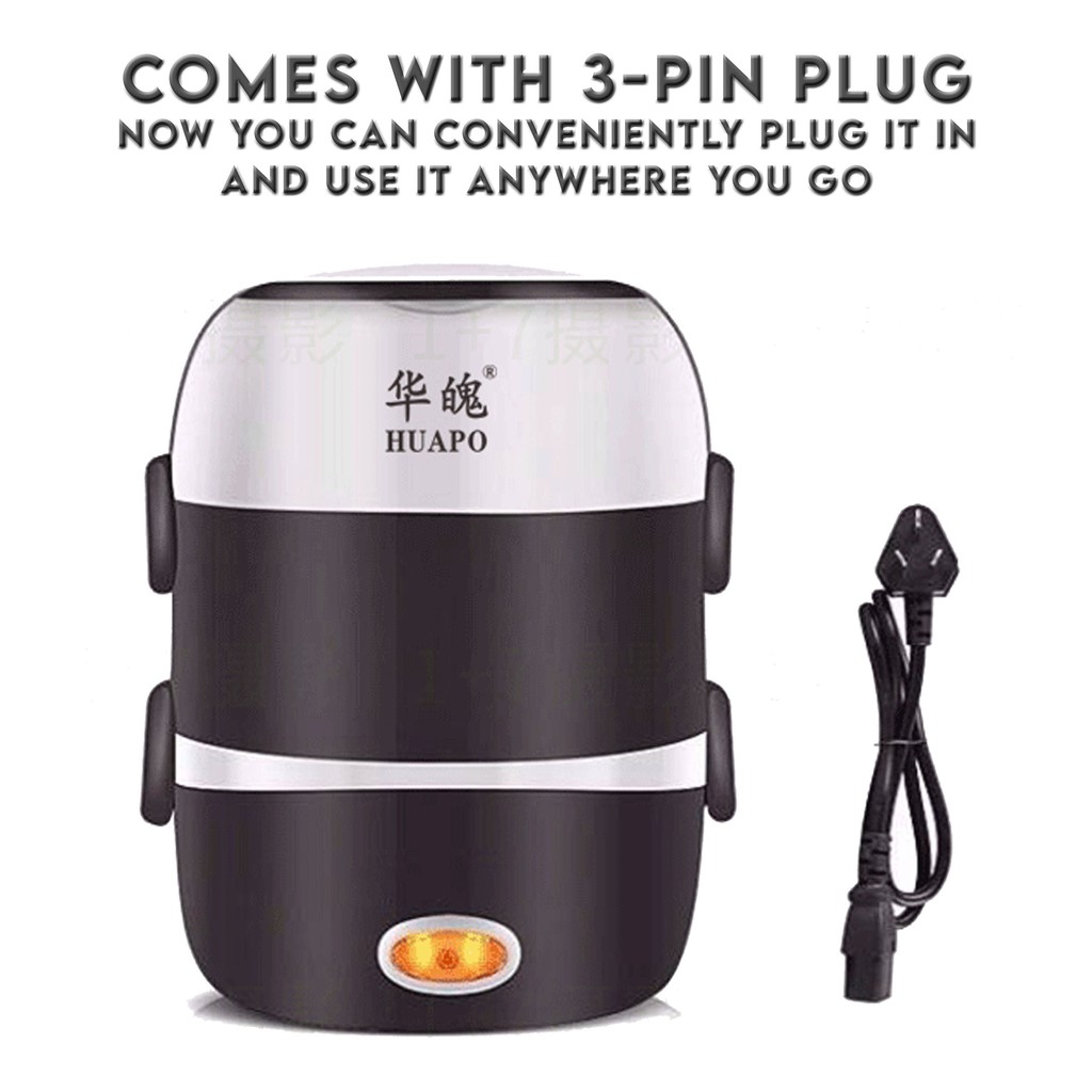 Lux Concept Electric Lunch Box Round (2L) Portable Heating Double Layer Stainless Multifunctional Mini Rice Cooker