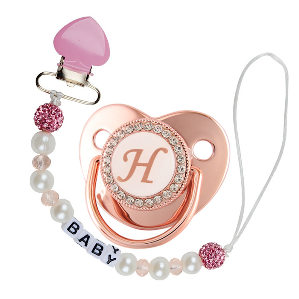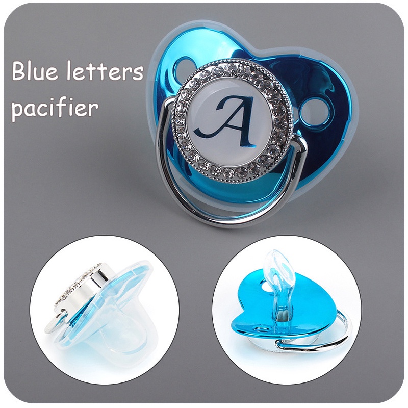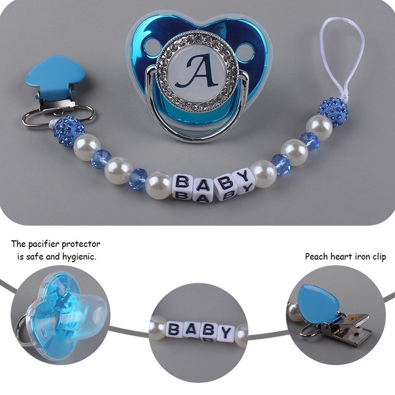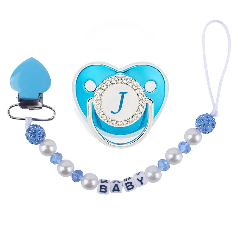Luxury Blue And Pink Baby Pacifier BPA Free Silicone Pacifier Name Initial Letter With Clip