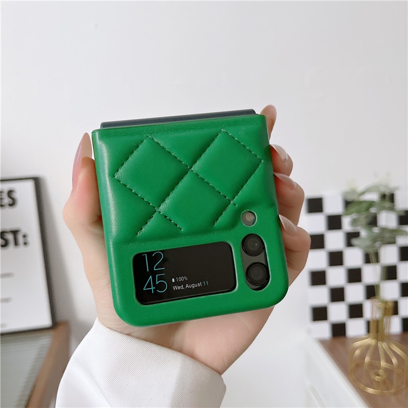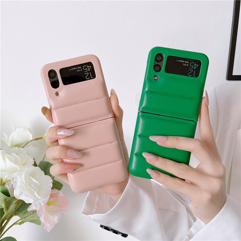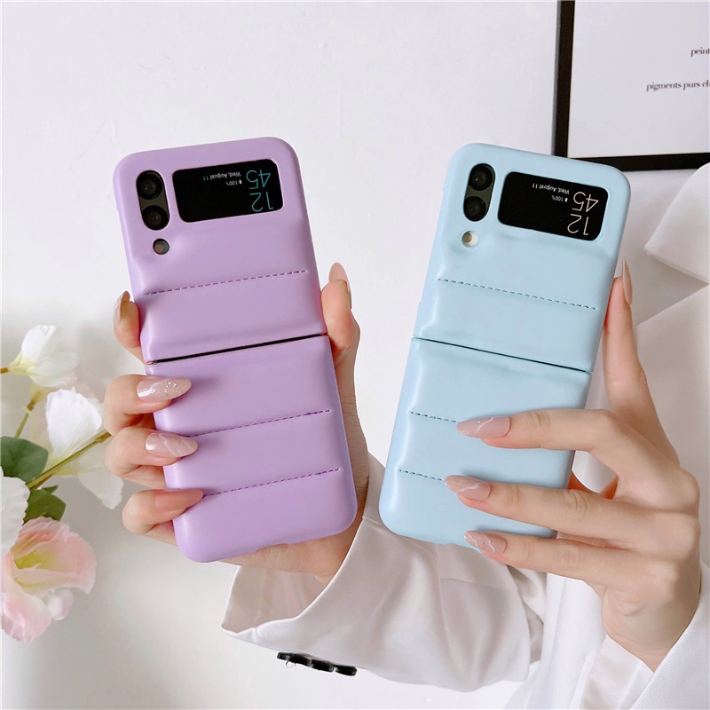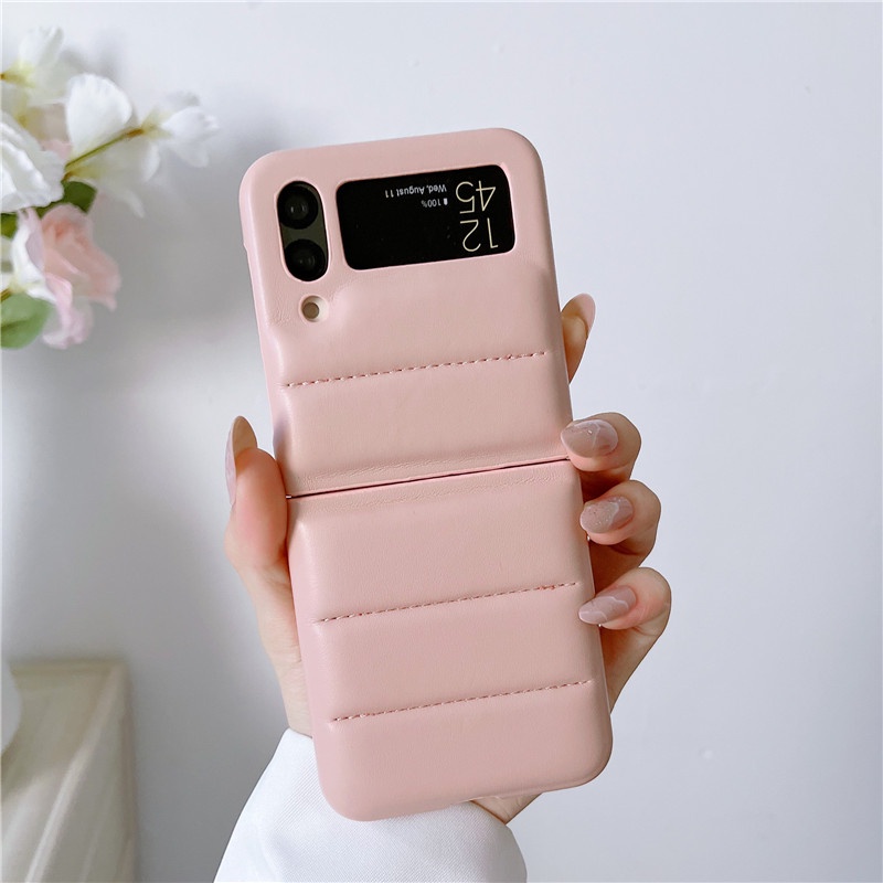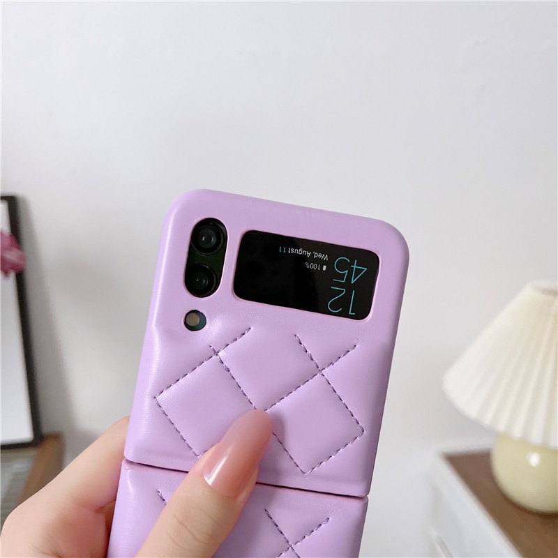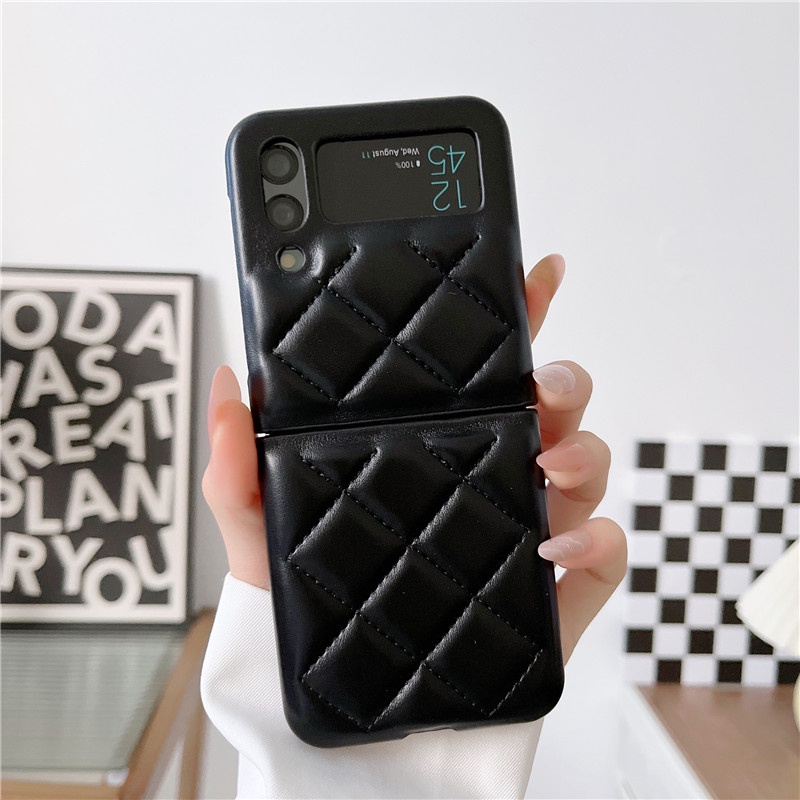 Luxury Down Jacket Leather Casing Samsung Galaxy Z Flip 4 Z Flip 3 Zflip 3 Small Fragrance Style Lingge Protective Shockproof Samsung Z Flip 4 Flip 3 Phone Case