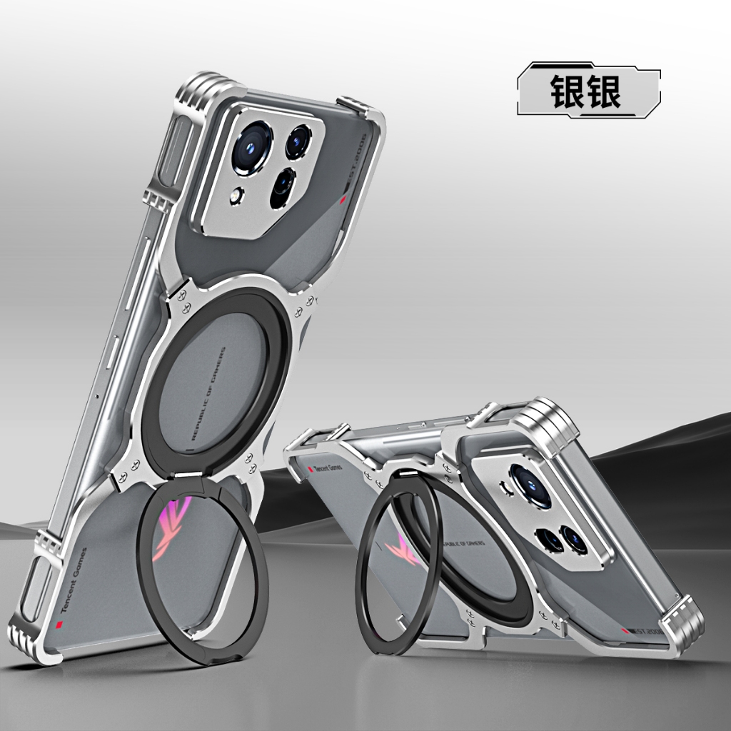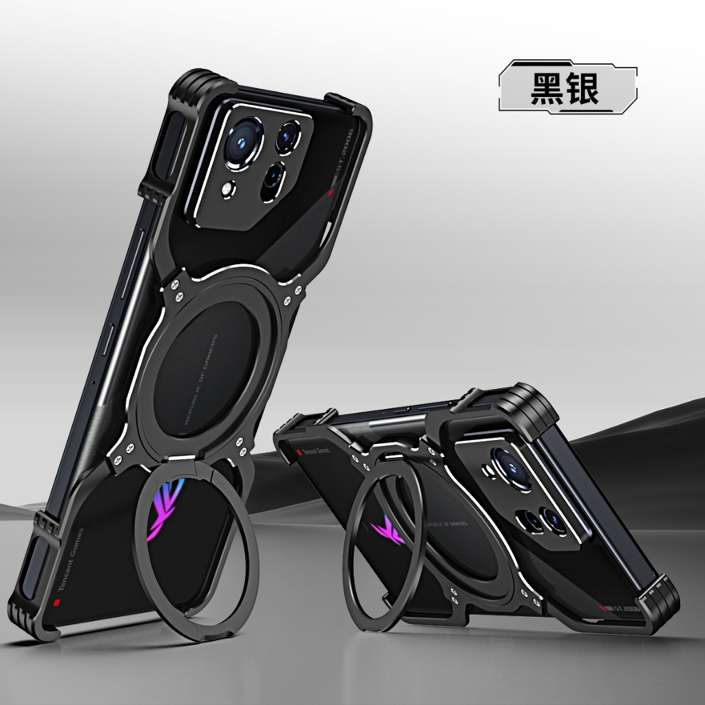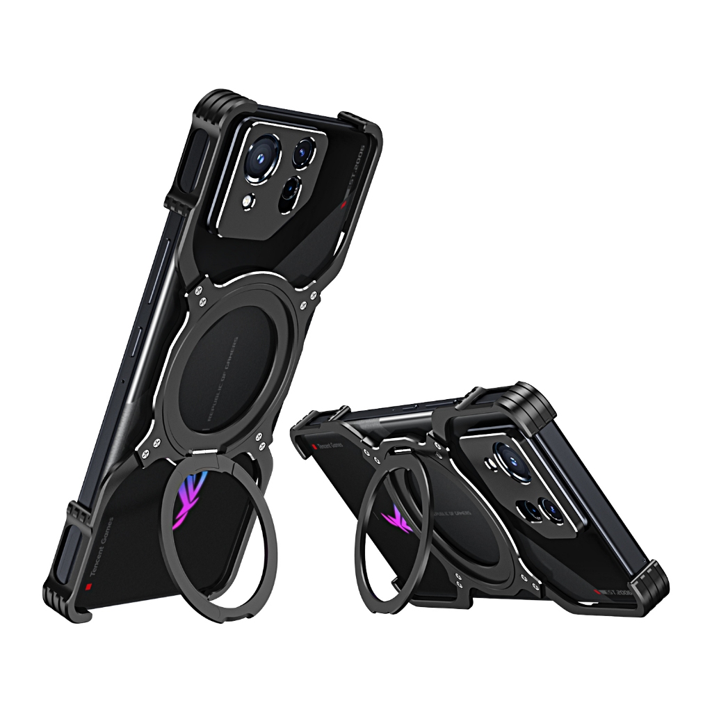 Luxury Magnetic Rimless Metal Case For ASUS ROG Phone 9 Rog 8 9 Pro 5G Aluminum Bumper Wireless Charging Case Stand Shell Shockproof Protection Cover