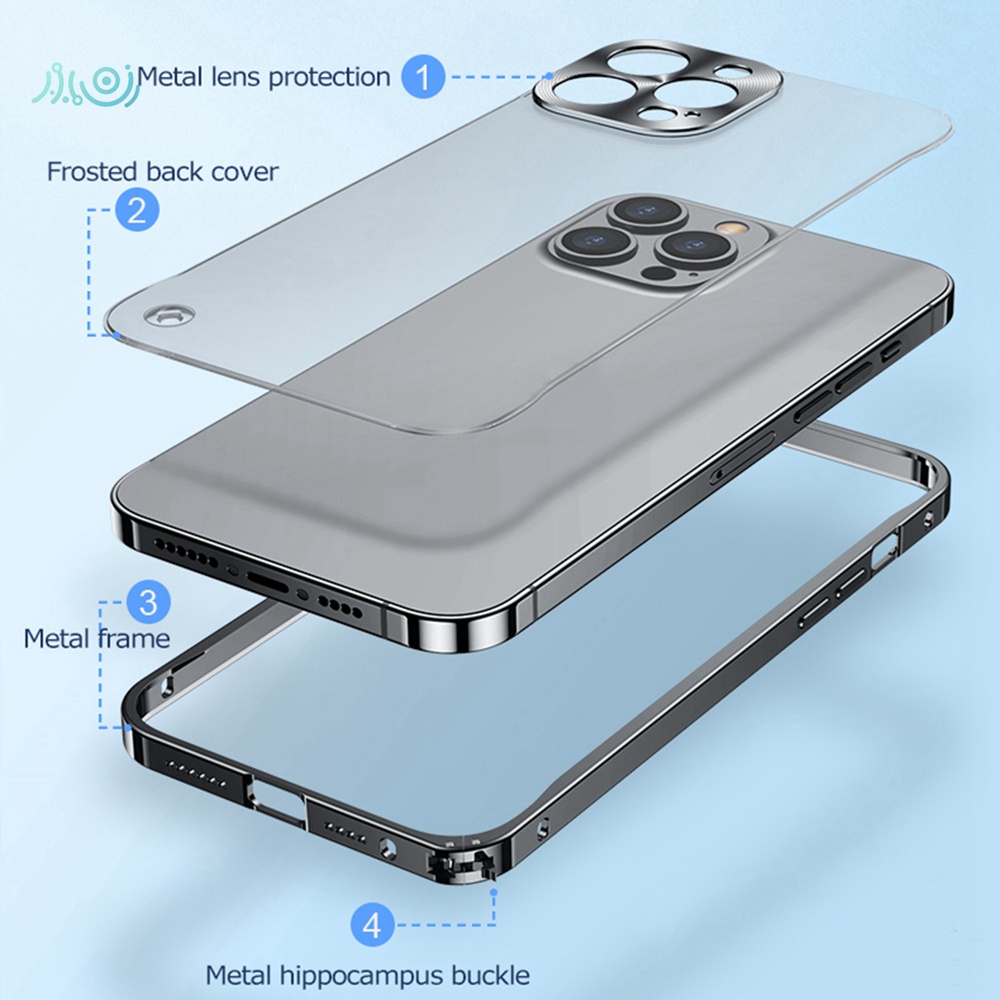 Luxury Metal Frame Lens Protection For iPhone 12 13 Pro Max Mini Aluminum Phone Case For iPhone 11 Pro Max Matte Translucent Back Cover