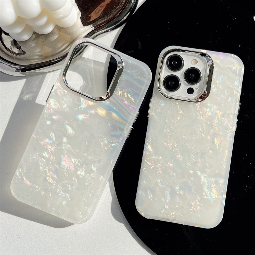 Luxury Seashell Grain Phone Case For IPhone 15 11 12 13 14 Xs Pro Max 7 8 14 15 Plus Xr X 11pro Metal Lens Frame Silicone Soft Cases
