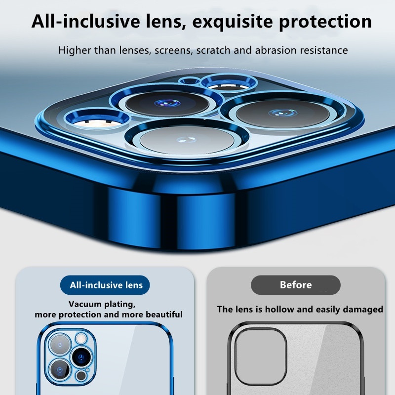 Luxury Square Frame Plating Clear casing for iPhone 13 12 11 Pro Max X XR XS 7 8 6 Plus SE Transparent Silicone Cover