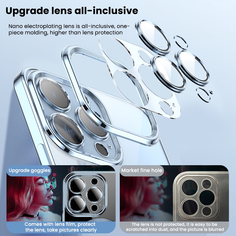 Luxury Transparent Plating Magnetic Wireless Charging Case For iPhone 13 12 11 Pro Max Lens Film Protector For iPhone 13Pro Max