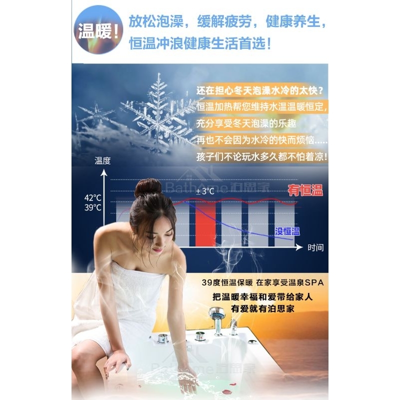 Luxury free-standing acrylic bathtub small apartment household adult small bathtub surfing massage thermostatic heating