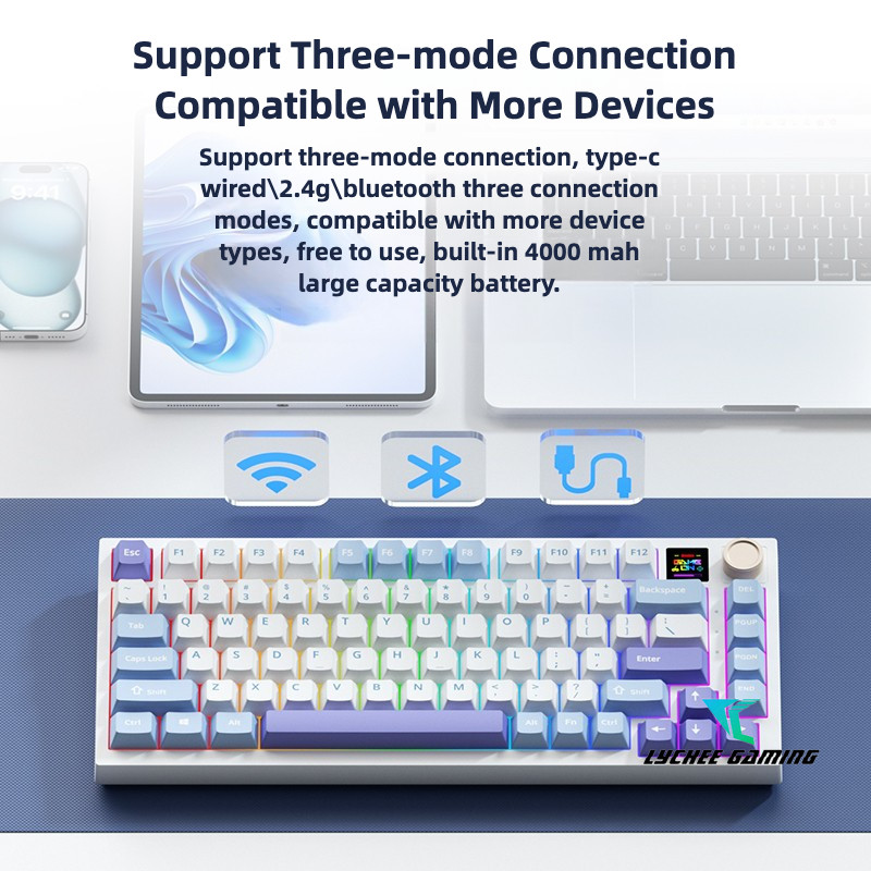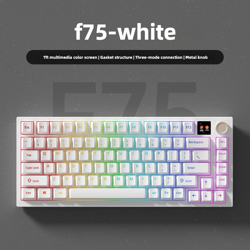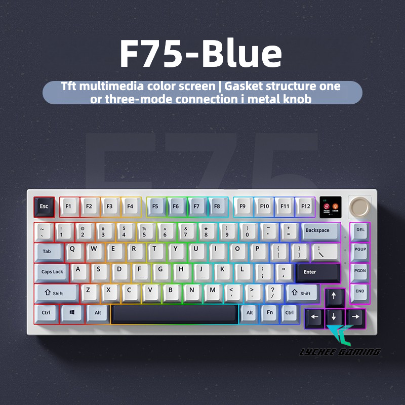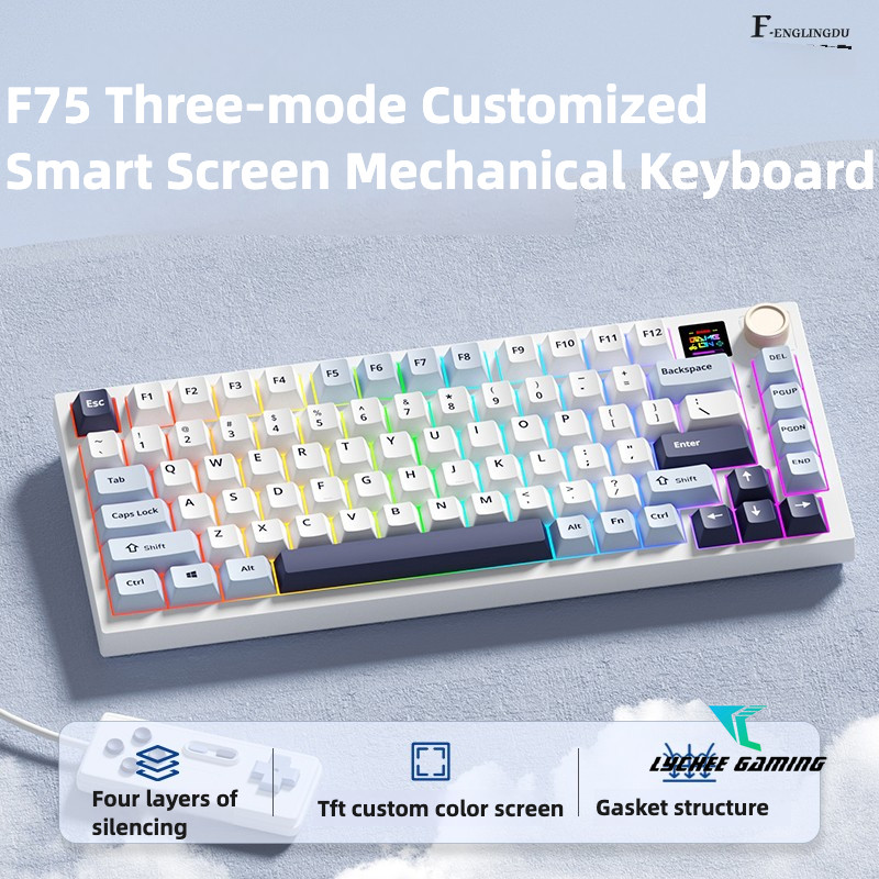 Lychee Gaming F75 Mechanical Keyboard 2.4g Wireless Bluetooth Three-mode Customized RGB TFT Screen Metal Knob HIFI Cream Sound Gasket Structure E-sports Game