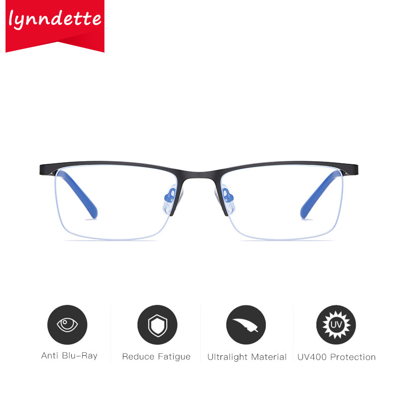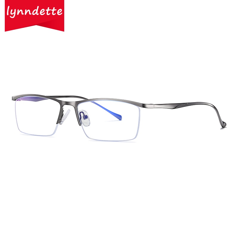 Lynndette Anti Blue Light Radiation Men Glasses Bingkai Cermin Mata Lelaki Fashion Metal Half Frame Spec Business UV400 Eyeglasses LY6016