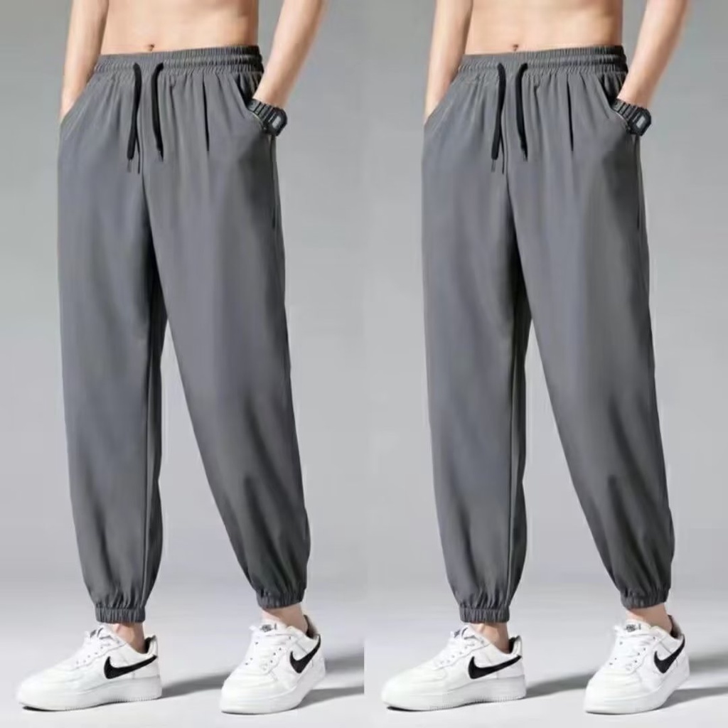 M-8XL Summer Thin Cool Ice Silk Pants Men Causal Loose Plus Size Jogger Pants Plain Sweatpants