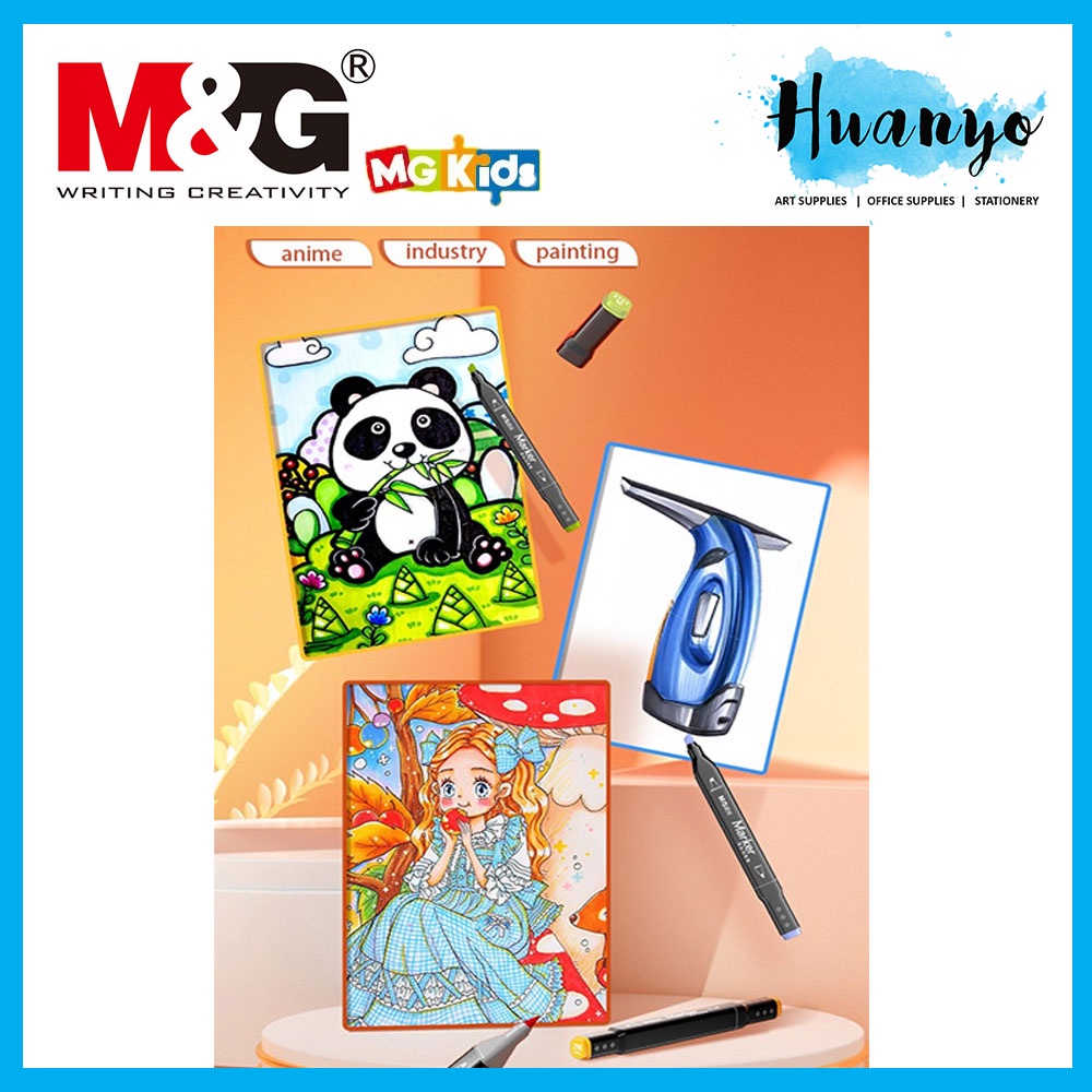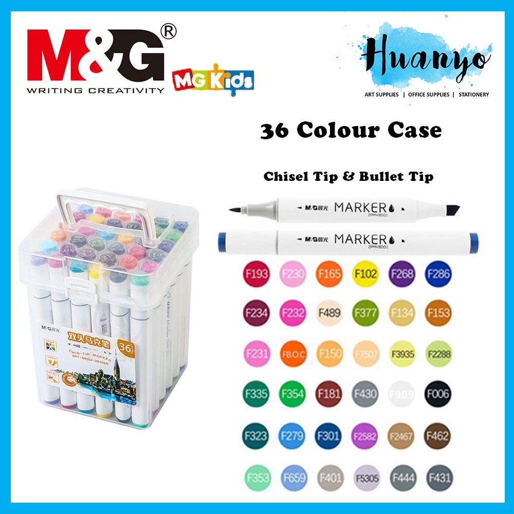 M&G 12/24/36/60/80 Dual Twin Tip Art Colour Marker Set For Drawing Brush Sketch MG Kids (Brush/Bullet/Chisel Tip)