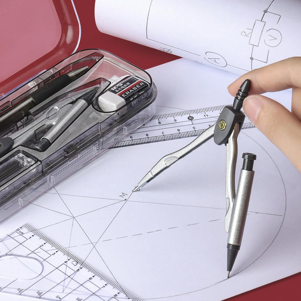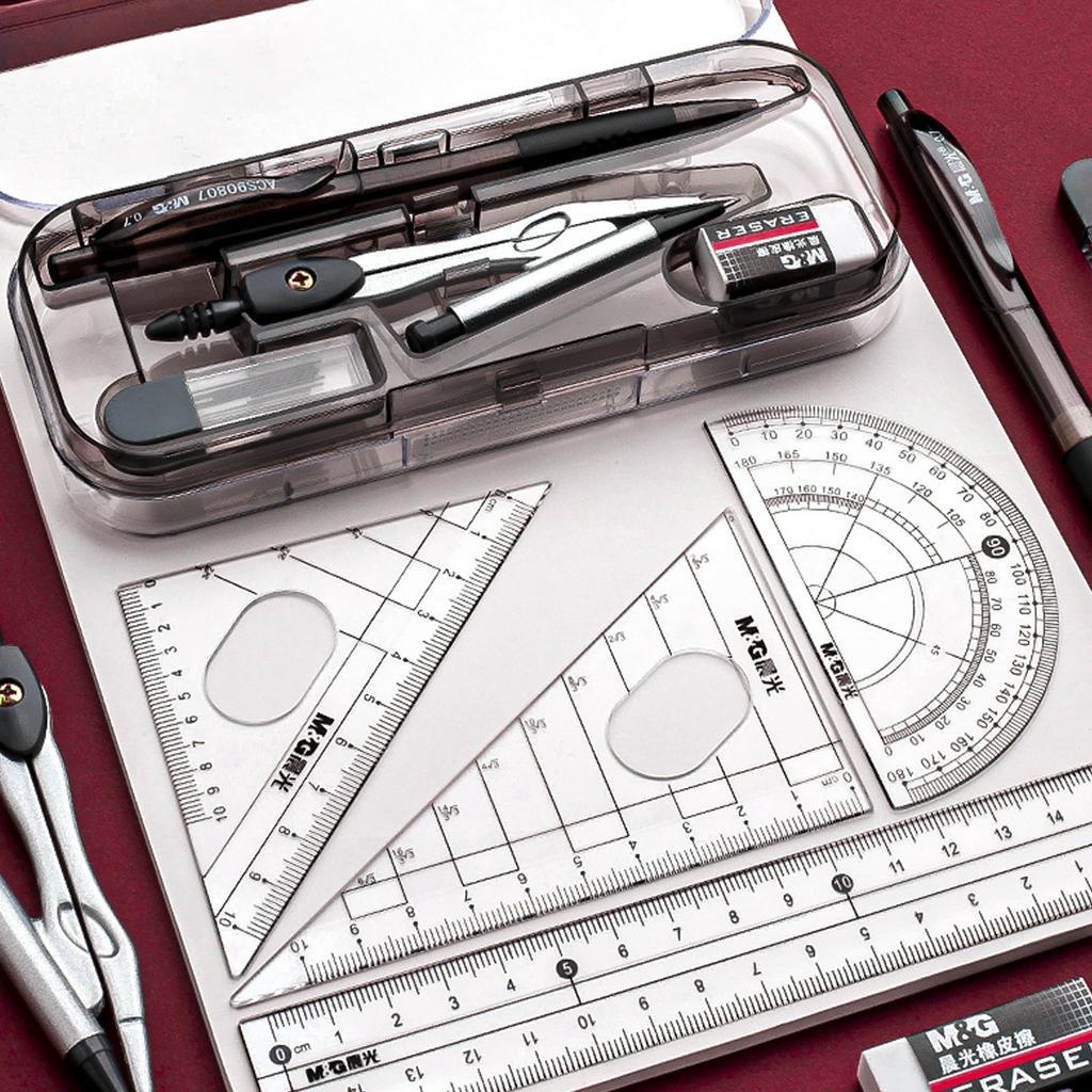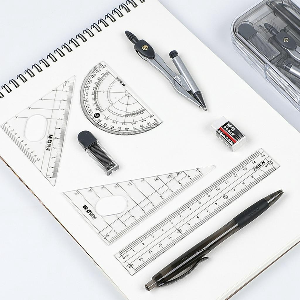 M&G 8 Pieces Compass Set Geometry Kit Set For Art Drawing Pencil Round Triangle Ruler Pembaris Bulat Segi Tiga
