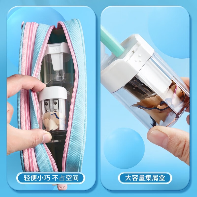 M&G Double Hole Pencil Sharpener Student Portable Mini Multifunctional Pencil Sharpener Large Caliber Pencil Sharpener Transparent White