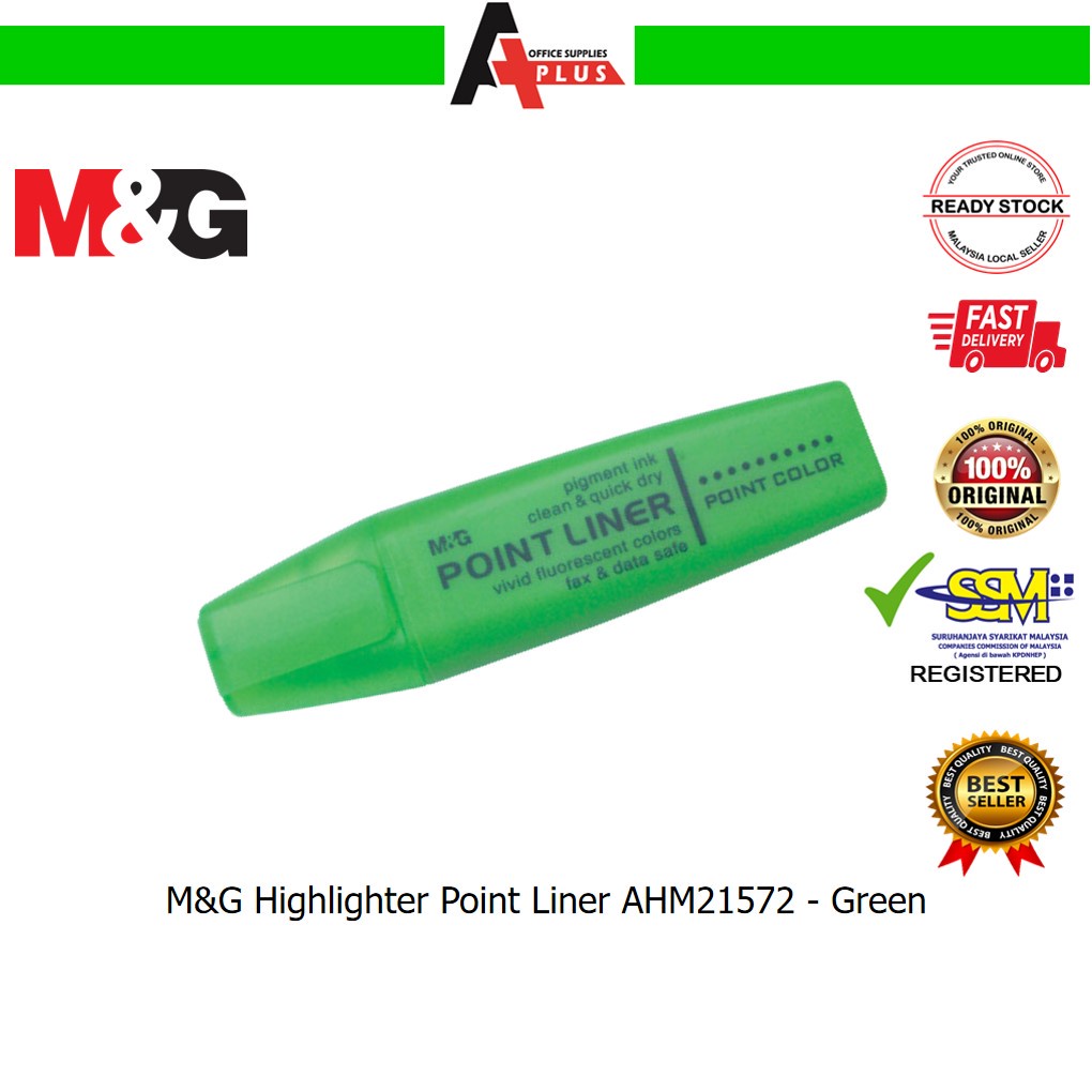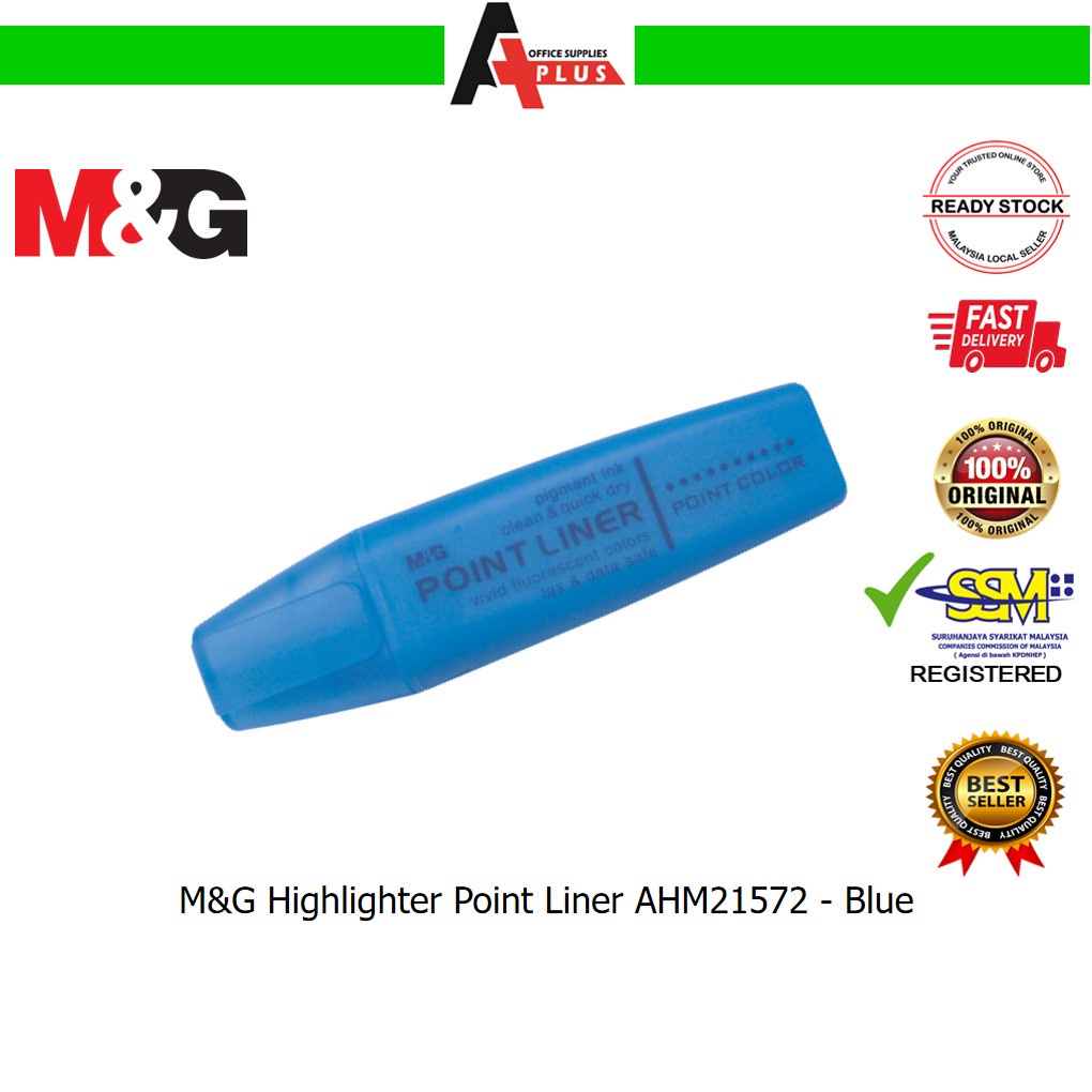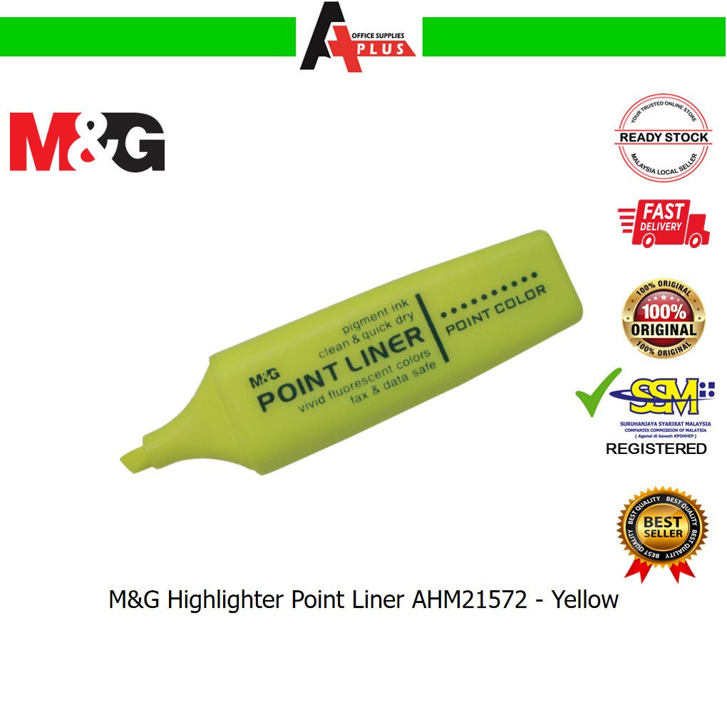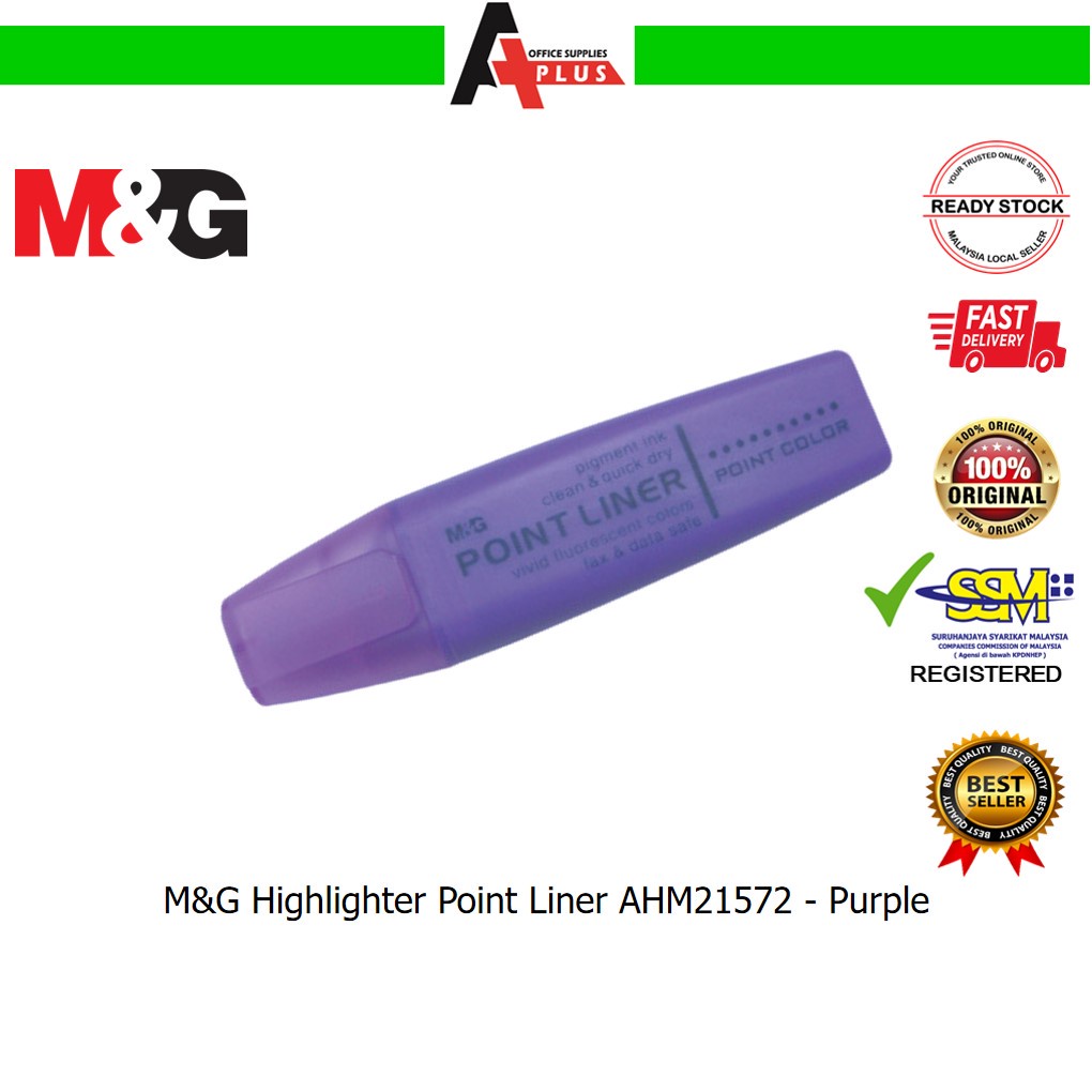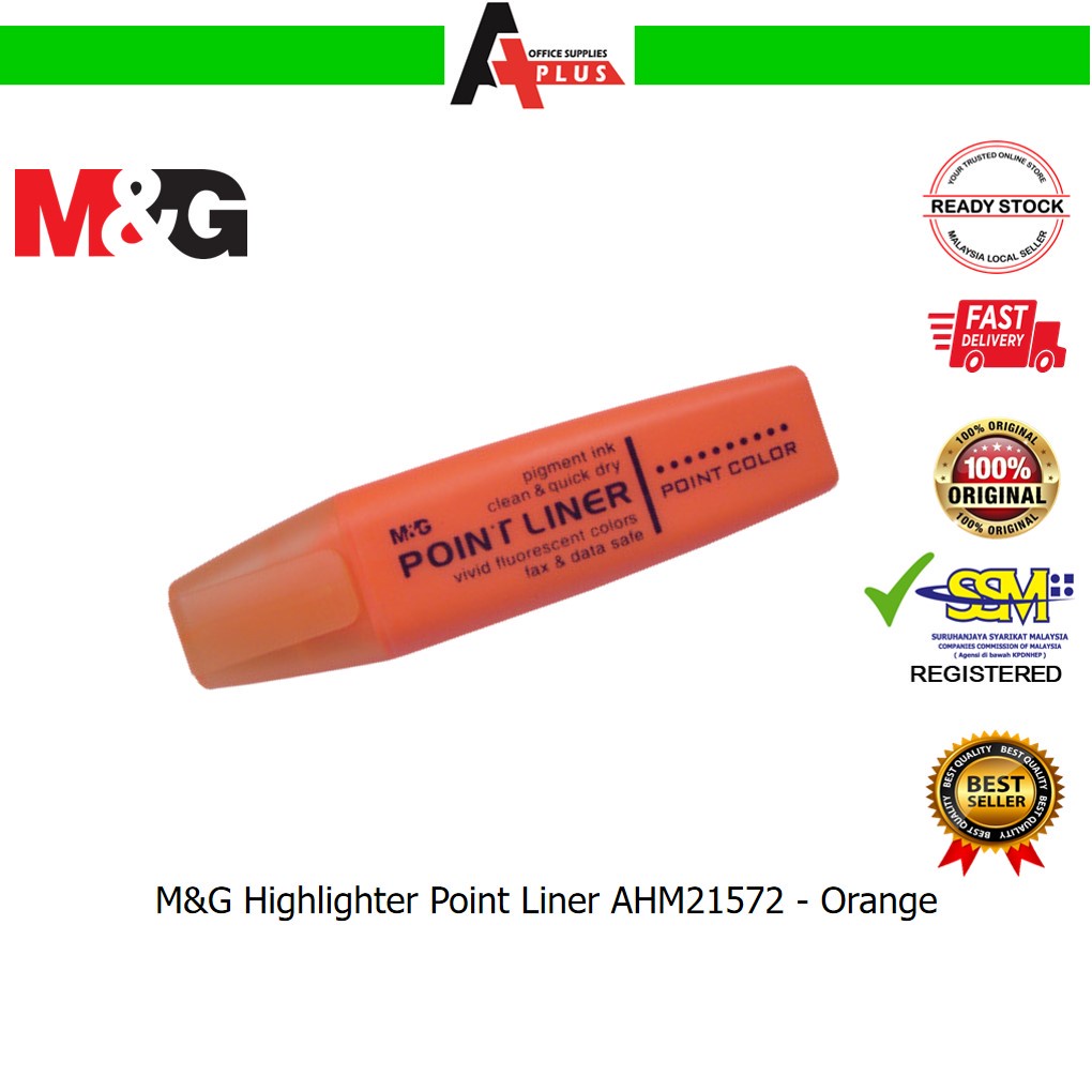 M&G Highlighter Point Liner AHM21572 / Pen Penanda Berwarna - Yellow, Orange, Pink, Green, Blue, Purple