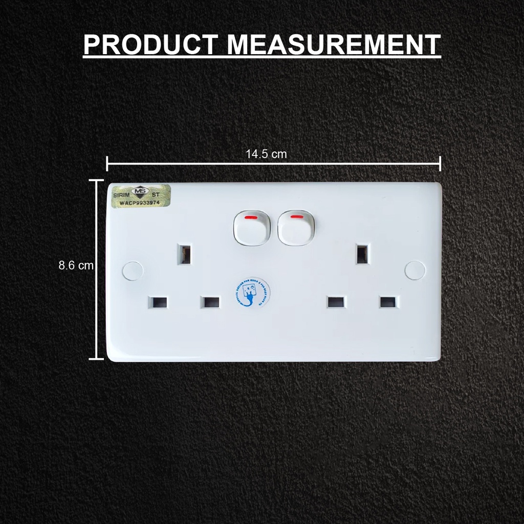 M MALL 13AMP 2 Gang Double Switch Socket (SIRIM) 250V Outlet / Dua socket / PLUG SOCKET (1pcs)