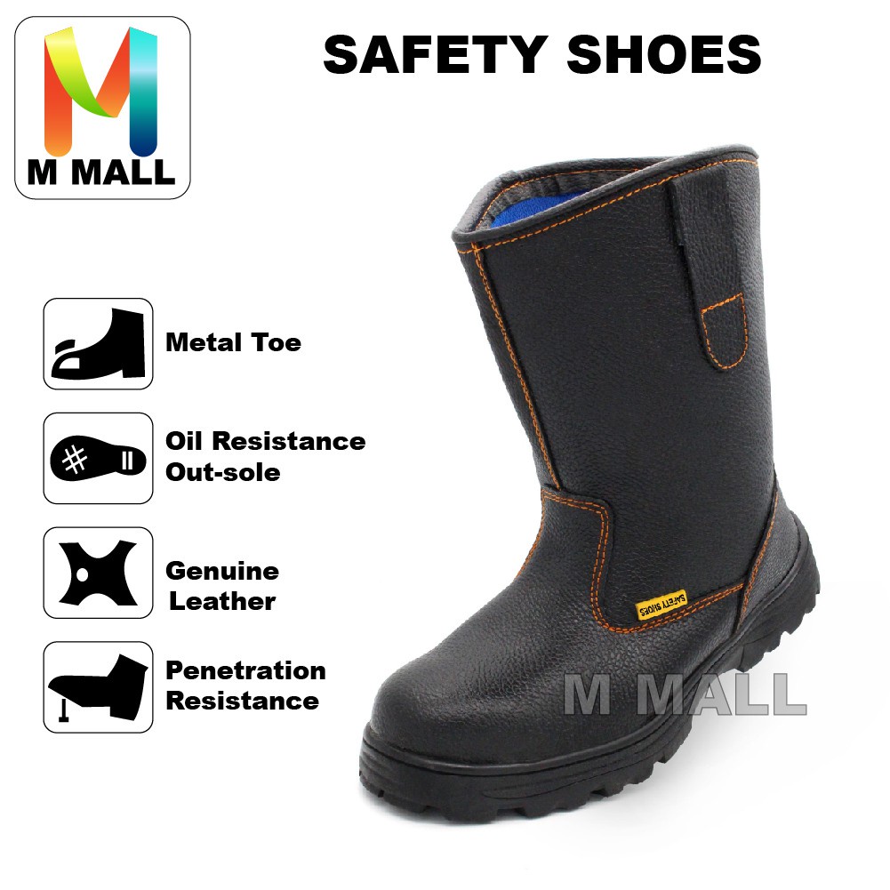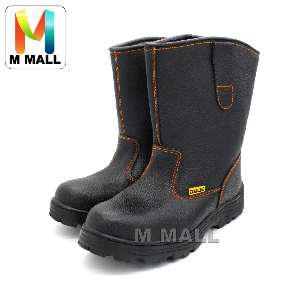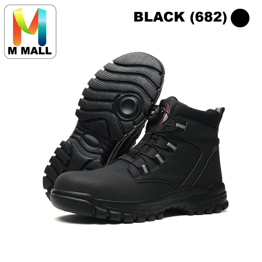 M MALL #900 High-Cut Safety Boot Shoes & Medium-Cut Anti-Smashing Steel Toe Cap with rotating button 682 (BLACK/ YELLOW)