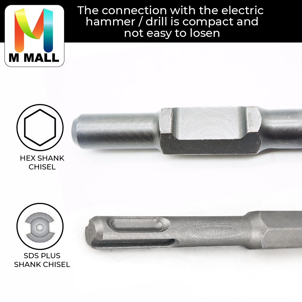 M MALL HEXAGON Shank Bull Point Chisel (30mm x 400m) / (POINT / FLAT) SDS Shank Chisel Bits (14mm x 230mm)
