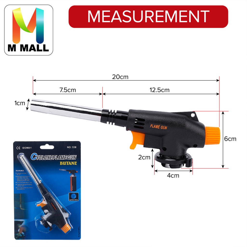 M MALL MULTI PURPOSE FLAME GUN Torch Butane Burner Fire Head GAS TORCH CAMPING [930] WITH GAS (SET)