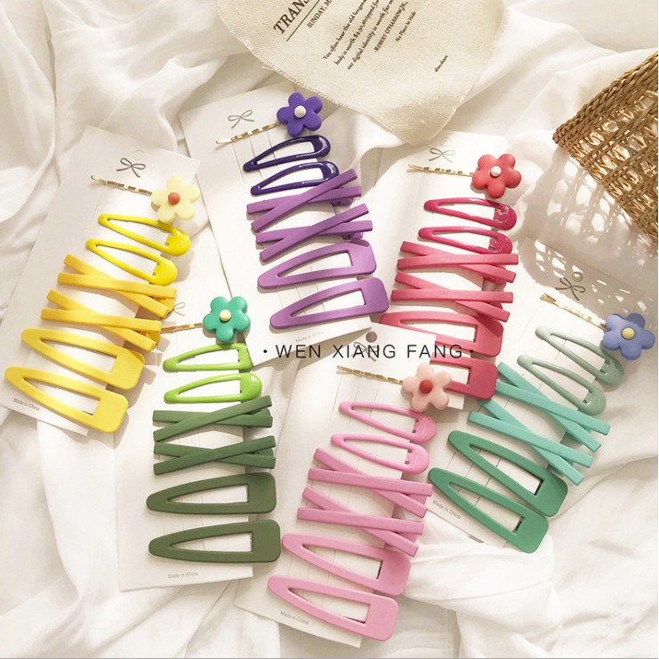 7Pcs/Set Hairpin Candy Color Hairclip Headpiece Fairy Beauty Simple Side Hair Clip Color Flower Hair Clip