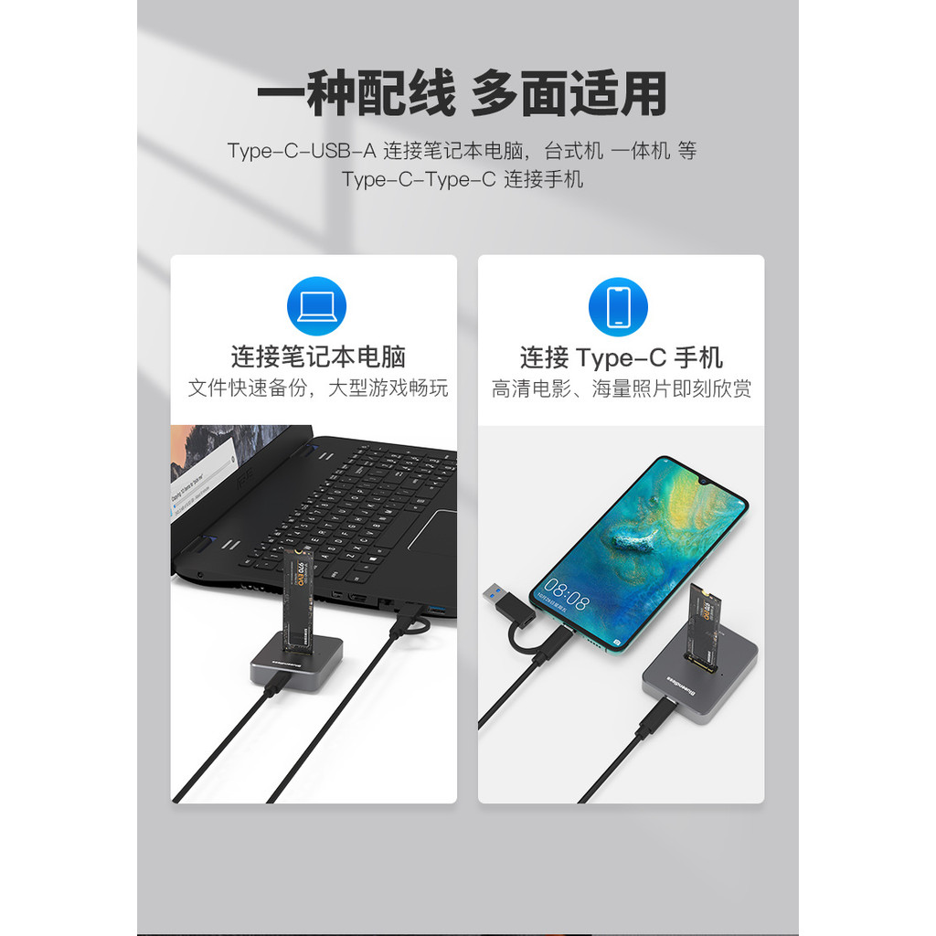 M.2 Dual Protocol SATA/NVME SSD Enclosure Type-C External SSD Reader with High-Speed Data Transfer