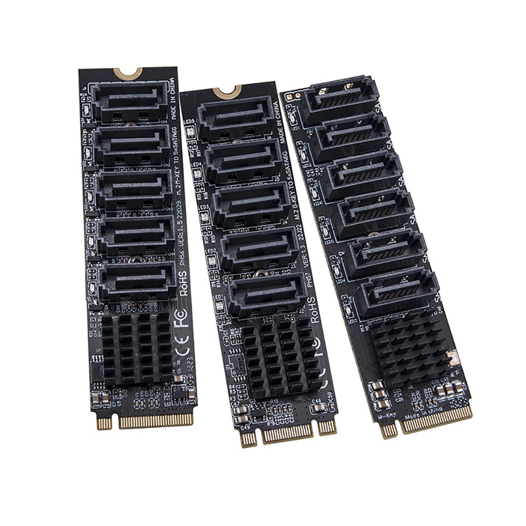 M.2 To SATA 3.0 Riser Card M2 M-KEY PCI-E Expansion Card 5/6 Port SATA3.0 6Gbps Converter for NVME NGFF To SATA SSD Adapter Card
