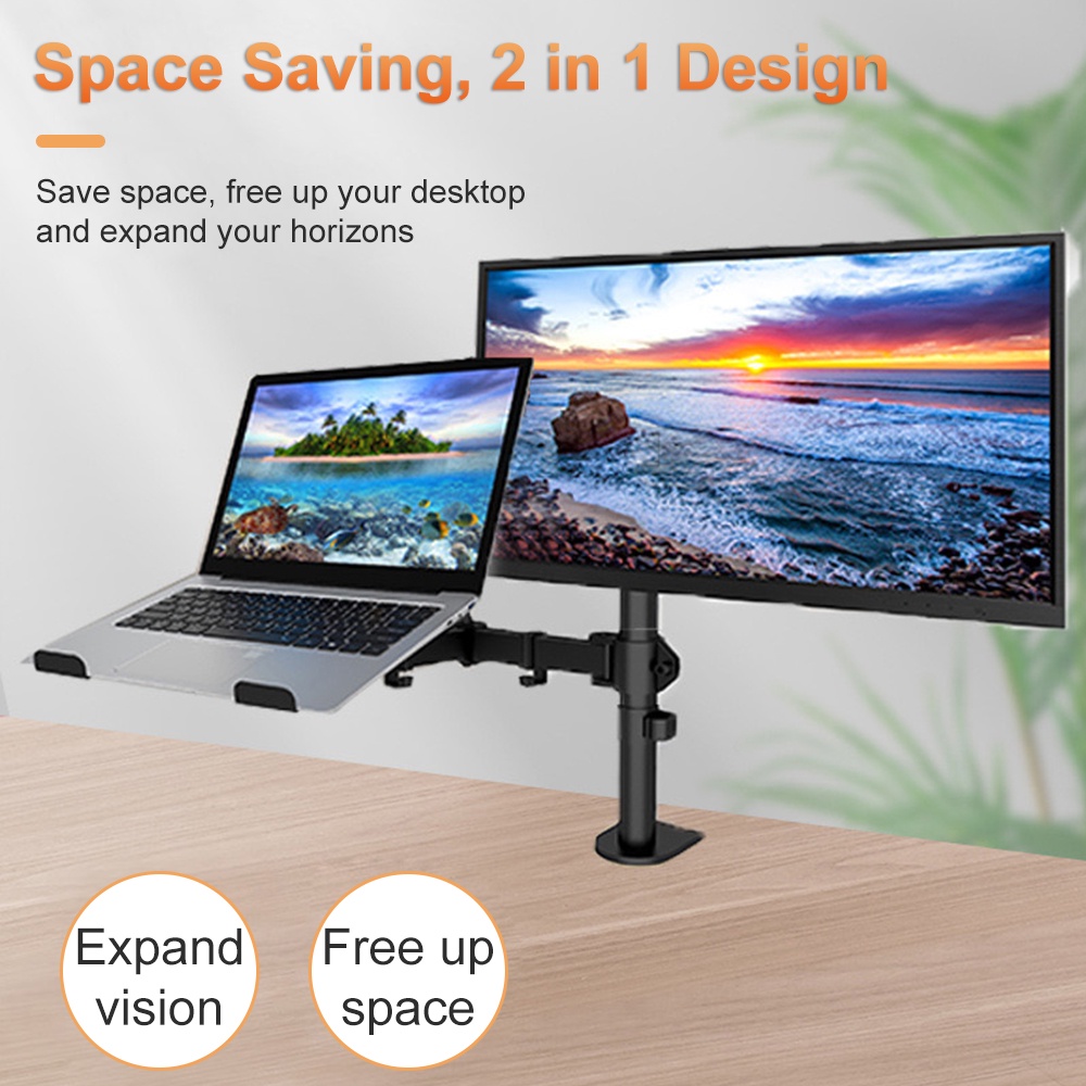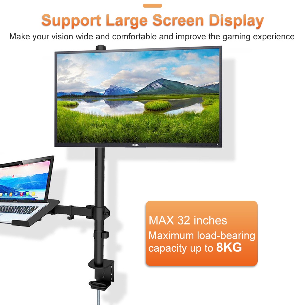 M074 Laptop and Monitor Stand Single Monitor Desk Mount with Tray for 17-32 inch Laptop Notebook and LCD Monitor Mount