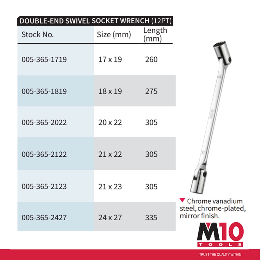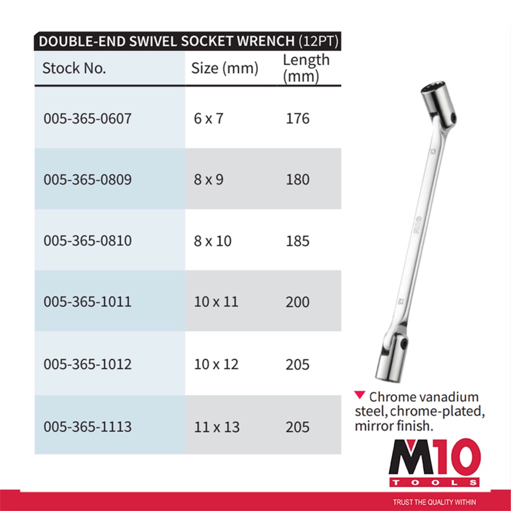 M10 Double End Swivel Socket Wrench (12PT) - mm