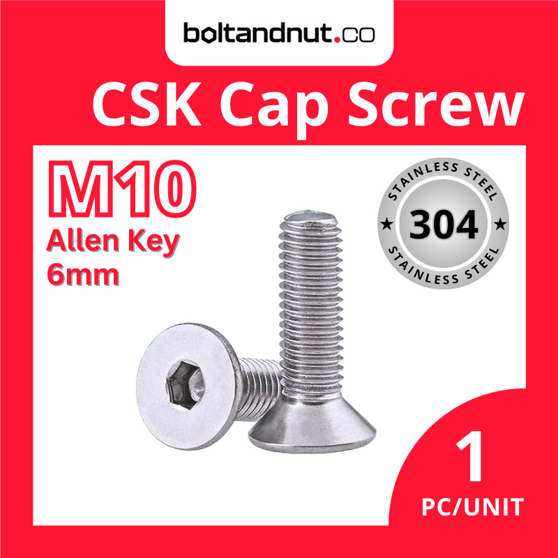 M10 M12 Hex Socket CSK Cap Screw DIN7991 | SUS 304 Stainless Steel Grade A2-70 | Skru Allen Key Screw Countersunk