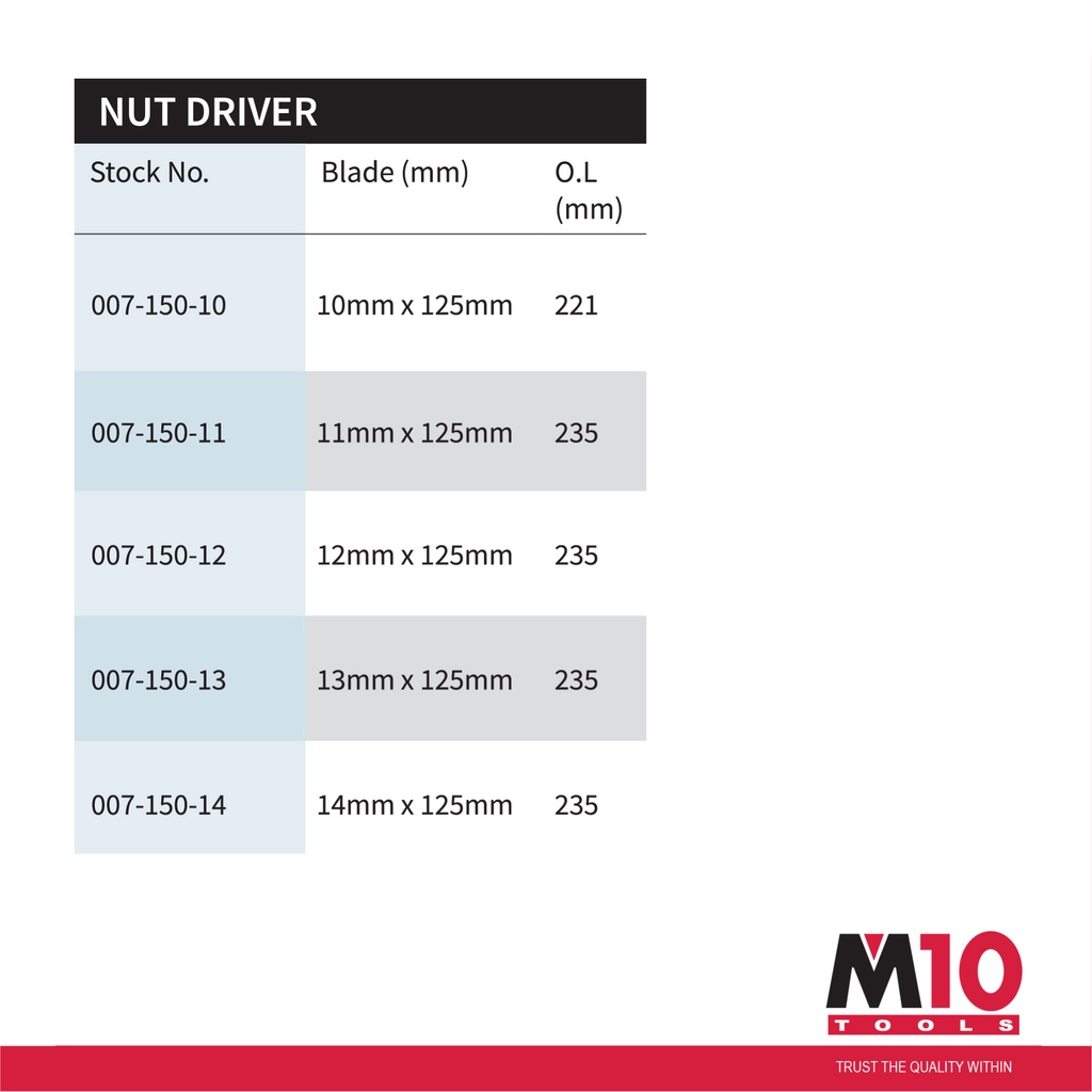 M10 Nut Driver - 5 / 5.5 / 6 / 7 / 8 / 9 / 10 / 11 /12 / 13 / 14 mm