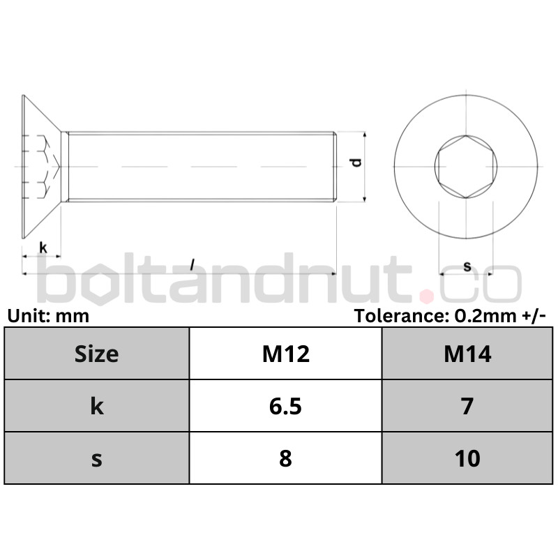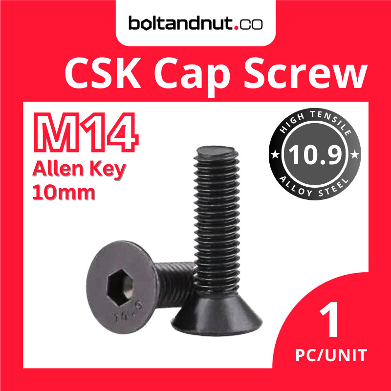 M12 M14 Hex Socket CSK Cap Screw DIN7991 | Alloy Steel Grade 10.9 | Black Oxide | Skru Allen Key Screw Countersunk