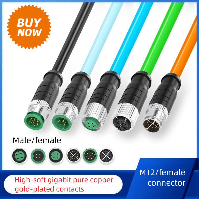 M12 Male to Male/Male to Female 4/8 Core A Type D/X Type Aviation Plug Encoder Communication Cable Industrial Connection Cable