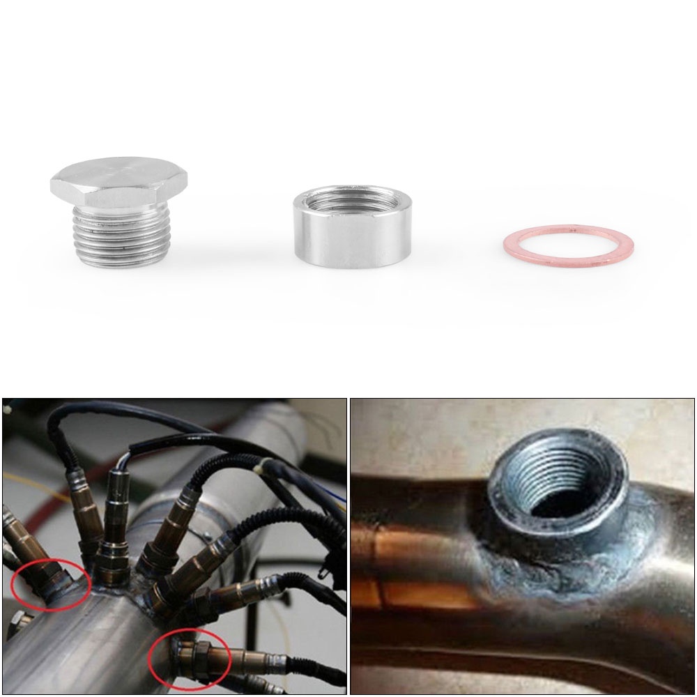 M18X1.5 Oxygen Sensor Stainless Steel Bung Plug Nut Stepped Mounting Cap Kit Plug Nut Plug Wideband Nut Fitting Weld Bungs