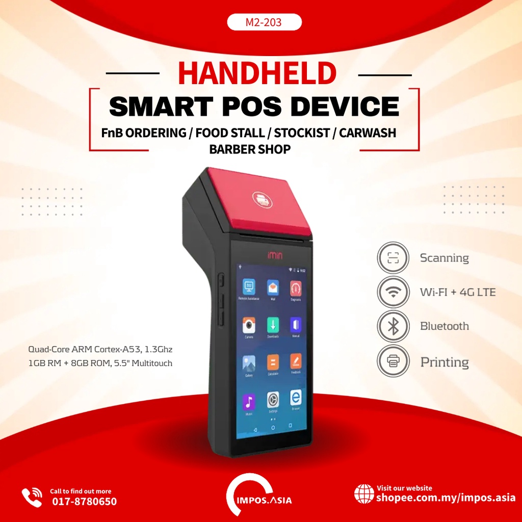 M2 IMIN Handheld Smart POS Device (FnB / Foodstall / Carwash / Stockist / Barbershop)