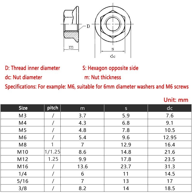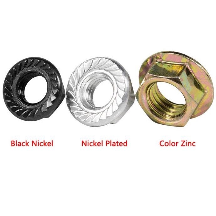 M2 M2.5 M3 M4 M5 M6 M8 M10 M12 M16 Nickel Plated Hexagon Flange Nut Pinking Slip Locking Lock Nut Serrated Flange Lock Nuts