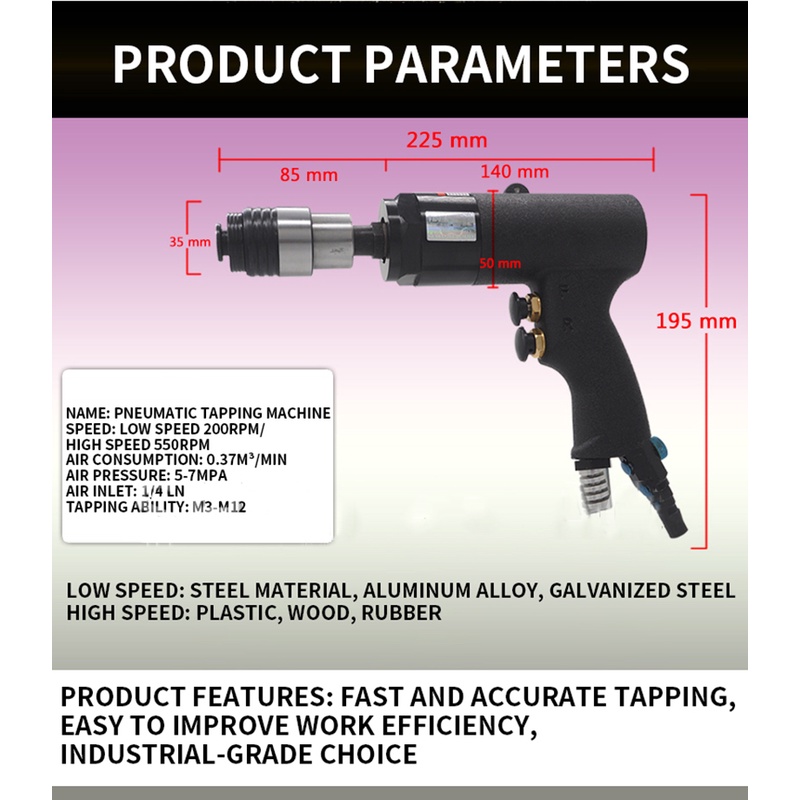 M3-M12 pneumatic tapping machine tapping machine pneumatic power tapping machine tapping drilling machine
