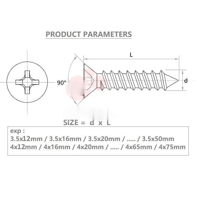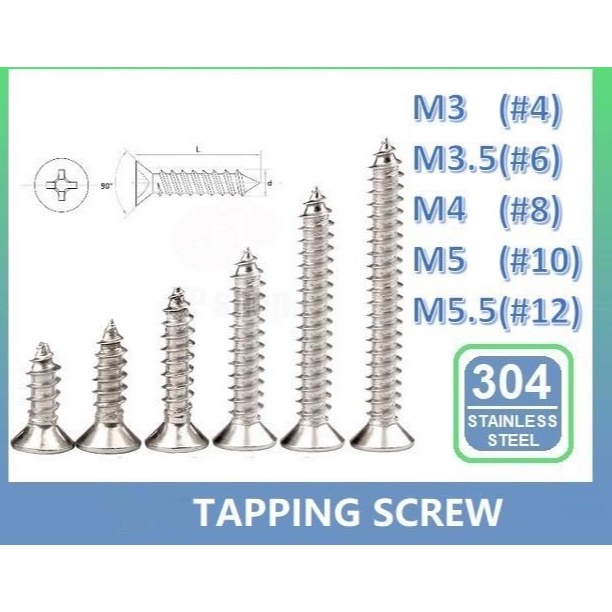 M3 M3.5 M4 M5 M5.5 CSK Self Tapping Screw 304 Stainless Steel Flat Head Screw Plastic Wood DIY