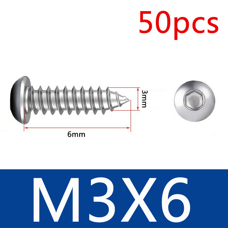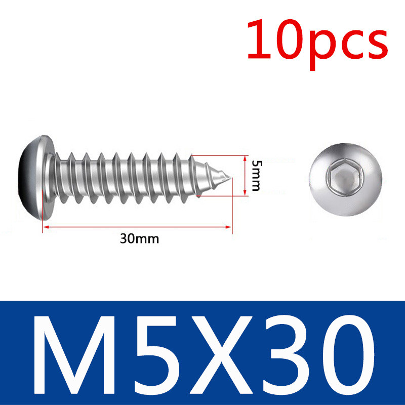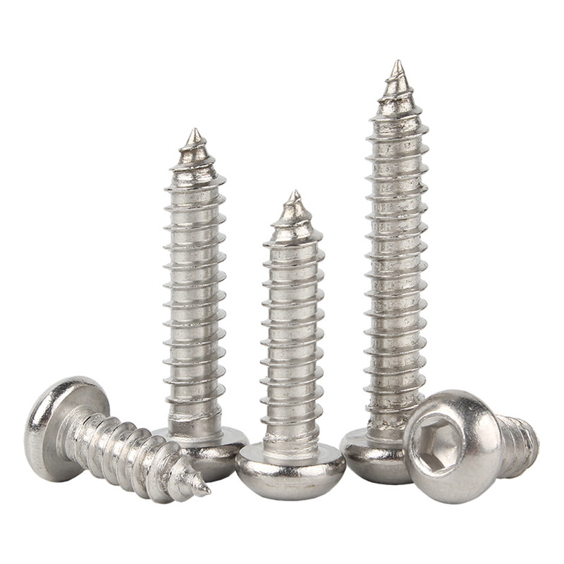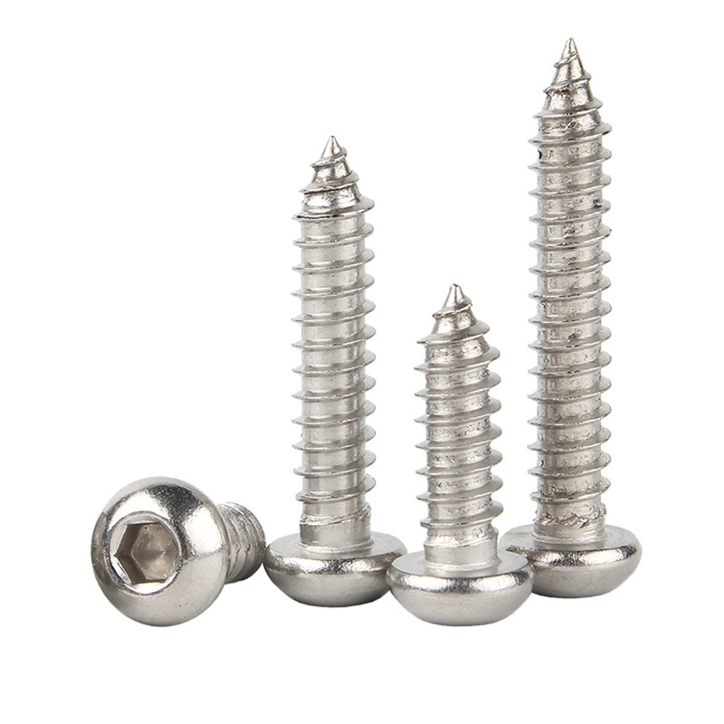 M3 M4 M5 M6 304 Stainless Steel Button Head Hex Hexagon Socket Self-Tapping Screw Round Head Allen Self-Drilling Tapping Bolt Machine Screws Length 6mm-40mm Millimeters