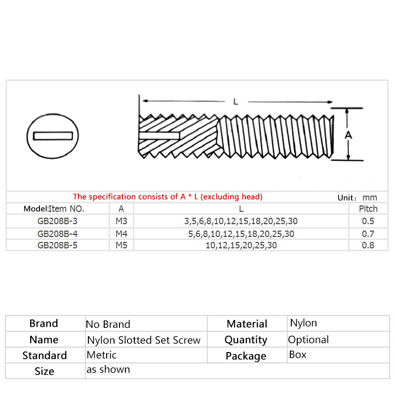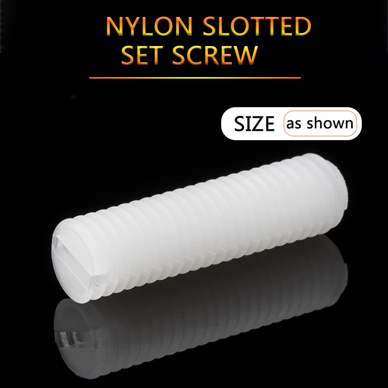 M3 M4 M5 M6 M8 M10 M12 White Slotted Nylon Set Screw Plastic Thread Flat Head Metric Headless Slotted Bolt Grub Screw Length 4mm-50mm DIY Tool Set Repair Kit Replacement Part