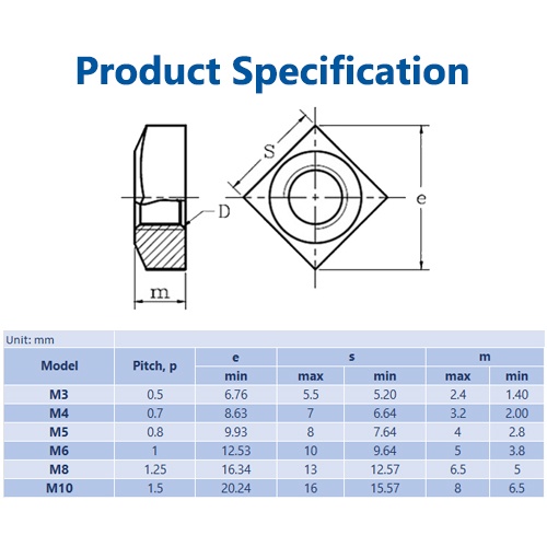 M3 M4 M5 M6 M8 M10 Square Nut 304 Stainless Steel DIN557 Skru Electronics Automotive DIY