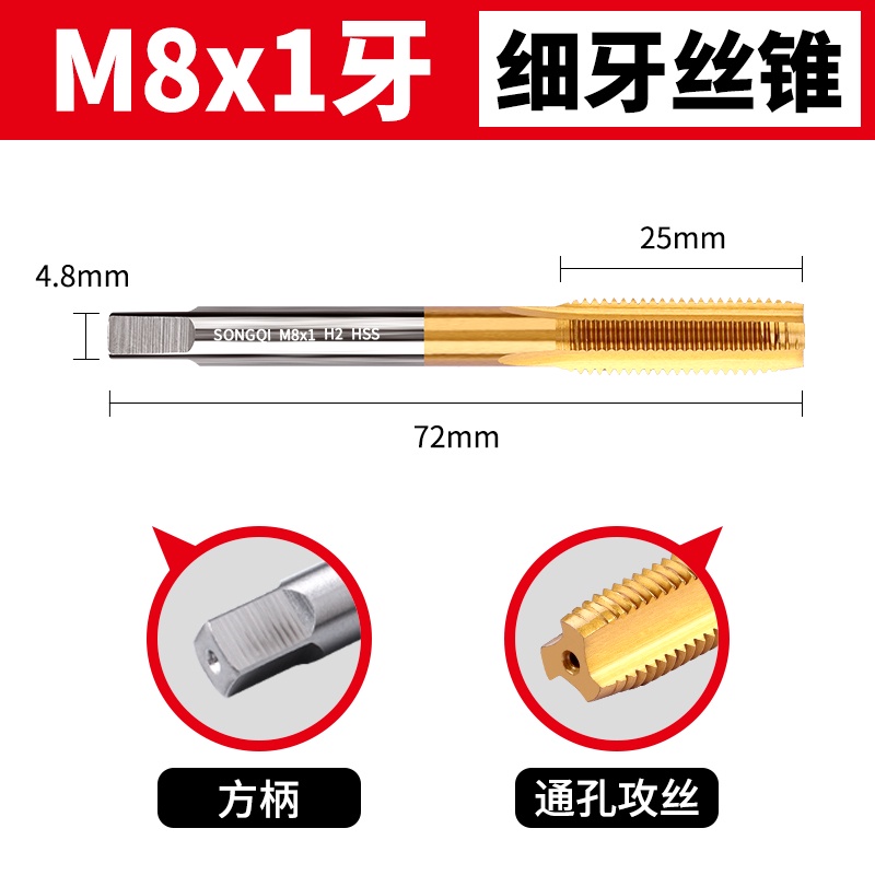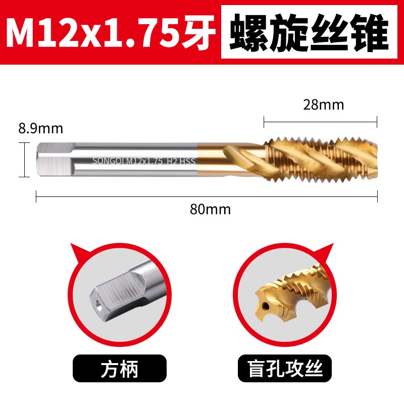 M3 M4 M5 M6 M8 machine tap, Titanium plated spiral tap, fine thread tap,Used for threading of steel materials such as HSS