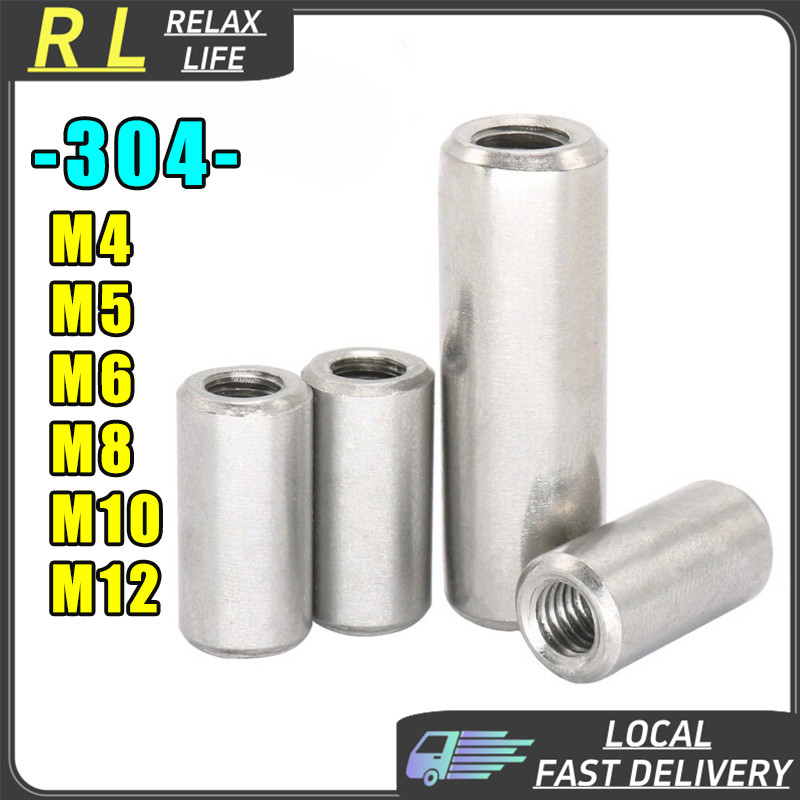 Single hole Internal thread round pin M4-M12 Round Coupling Nut Internal Thread Connector for Rods And Bolts 304 Stainless Steel Sleeve Nut M5 M6 M8 M10
