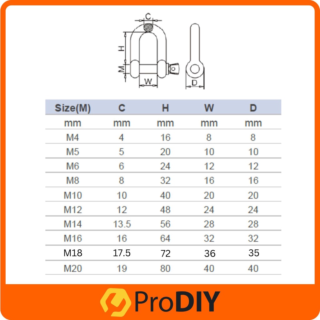 M4 M5 M6 M8 M10 M12 M14 Stainless Steel 304 U shaped Shackle Hook Screw Pin Bow Shackle SS304