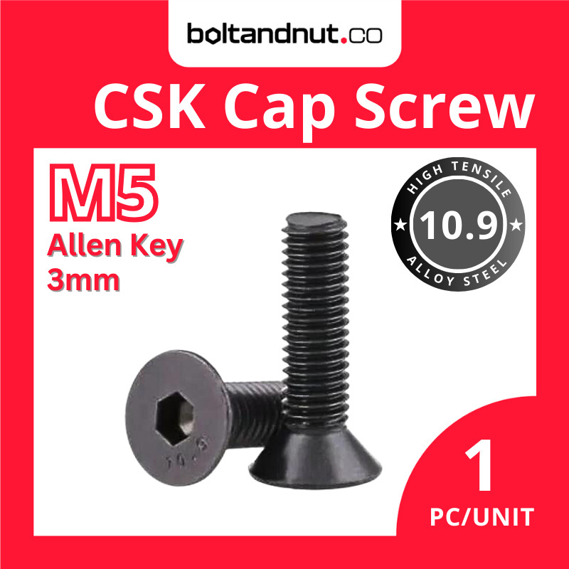 M5 M6 Hex Socket CSK Cap Screw DIN7991 | Alloy Steel Grade 10.9 | Black Oxide | Skru Allen Key Screw Countersunk